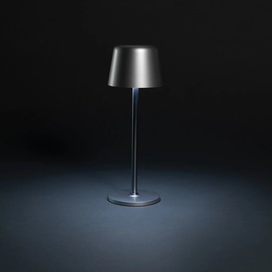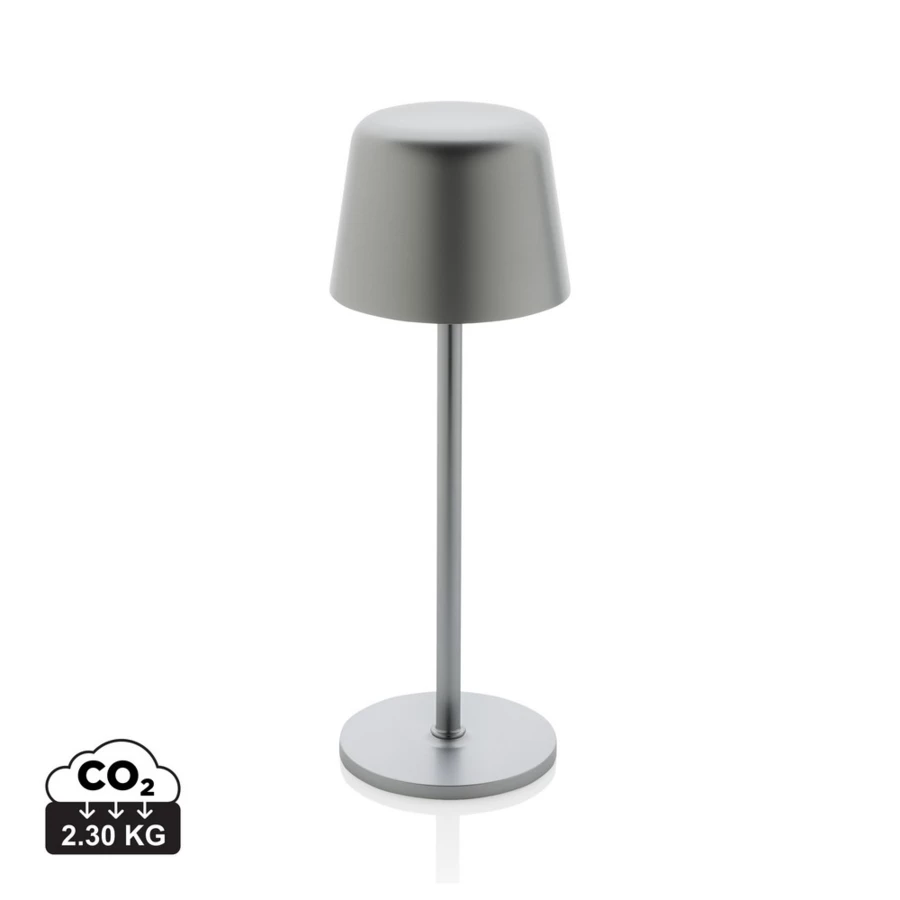 Lampka na biurko, lampka stołowa, wykonana z ABS i metalu z recyklingu, 3 tryby świecenia, wbudowany akumulator o pojemności 1200 mAh umożliwia świecenie do 8 godzin na jednym ładowaniu, ponowne ładowanie w 3 godziny, ładowana przez USB C, kabel 80 cm z TPE z recyklingu w komplecie, w pudełku z certyfikatem FSC® mix