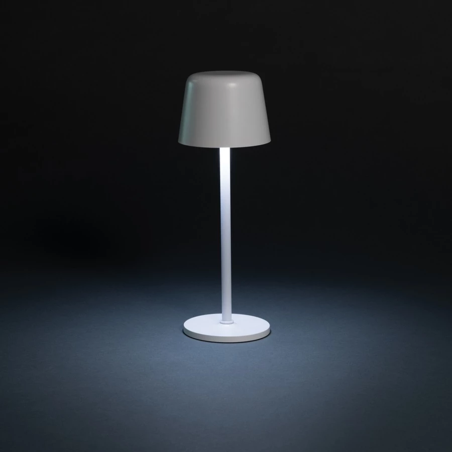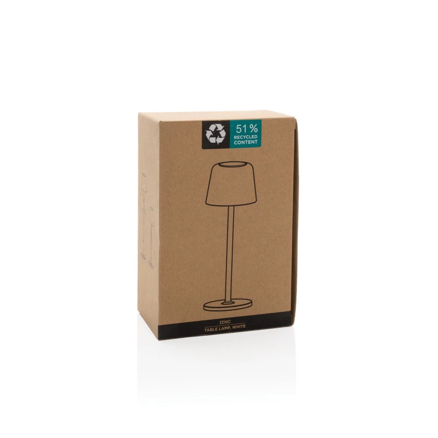 Lampka na biurko, lampka stołowa, wykonana z ABS i metalu z recyklingu, 3 tryby świecenia, wbudowany akumulator o pojemności 1200 mAh umożliwia świecenie do 8 godzin na jednym ładowaniu, ponowne ładowanie w 3 godziny, ładowana przez USB C, kabel 80 cm z TPE z recyklingu w komplecie, w pudełku z certyfikatem FSC® mix