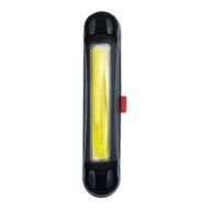 Lampka rowerowa LED ładowana przez USB. Dioda COB. Światło czerwone i/lub białe. Tryby świecenia: mocny, ekonomiczny wolno migający, stroboskopowy. 100 lumenów. Akumulator litowo-jonowy 240mAh. Regulowany pasek mocujący do kierownicy. Kabelek do ładownia w zestawie.