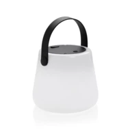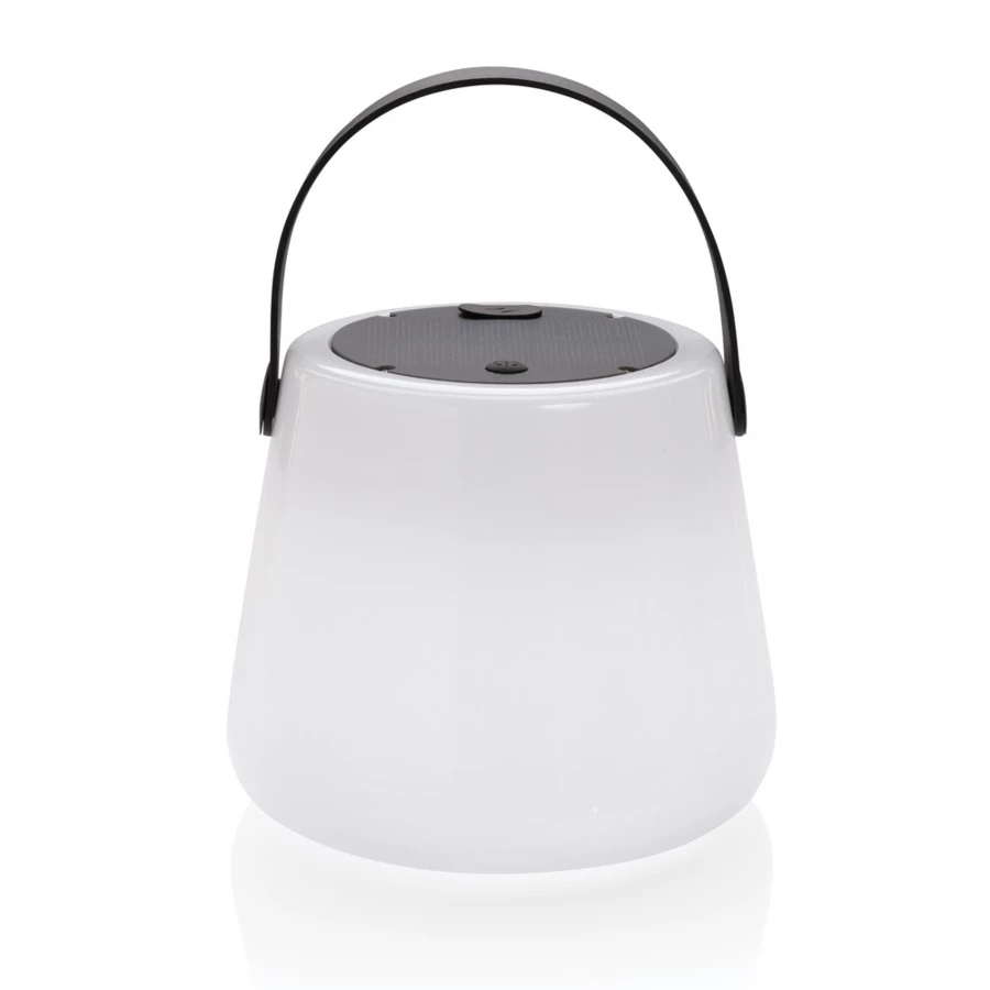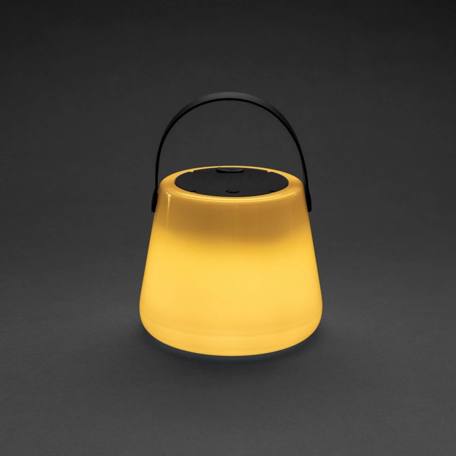Lampka LED, lampka solarna wykonana z ABS z recyklingu, całkowita zawartość materiałów z recyklingu obliczona na podstawie wagi całkowitej przedmiotu: 71%, wbudowana bateria o pojemności 1200 mAh, do 20 godzin pracy na jednym naładowaniu, wodoodporna IPX4 (całkowita ochrona przed spryskiwaniem i zachlapaniem wodą z różnych kierunków z natężeniem do 10 litrów na minutę), kabel w komplecie, wejście USB typu C, ślad węglowy produktu: 2,45 kg CO2