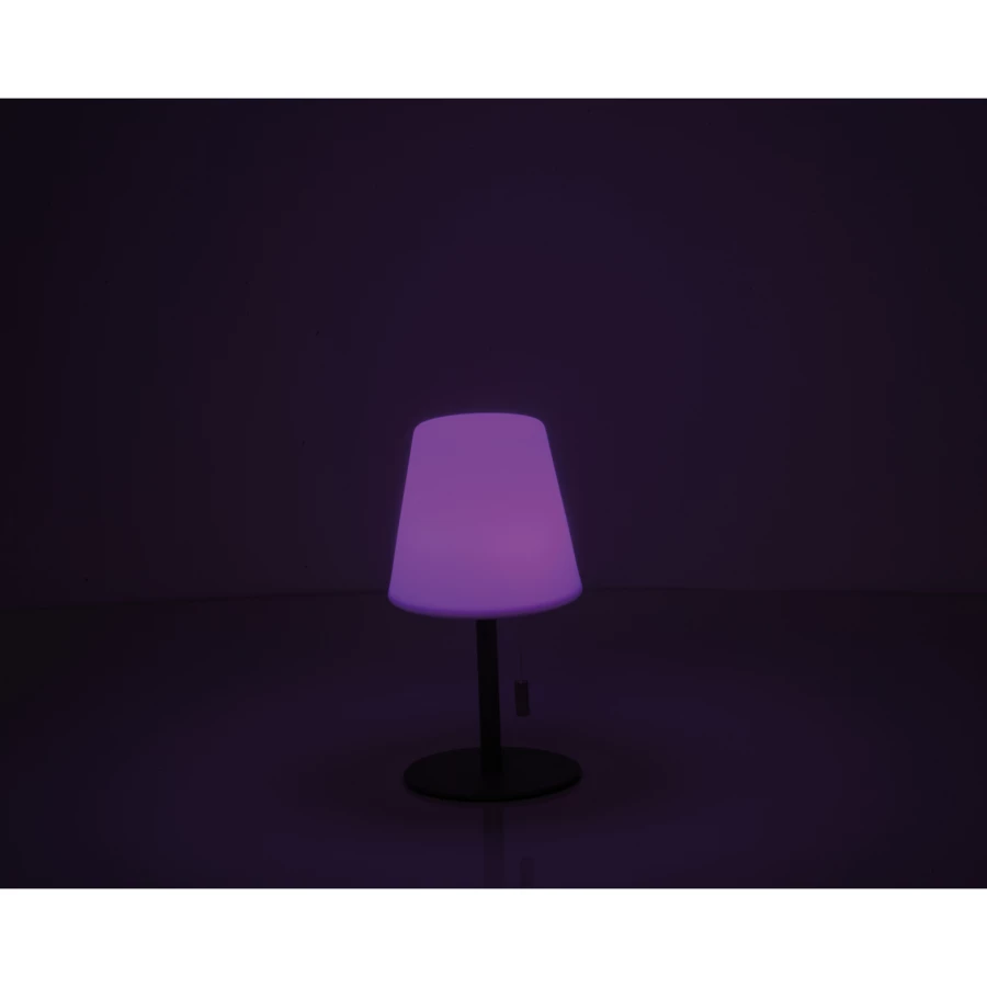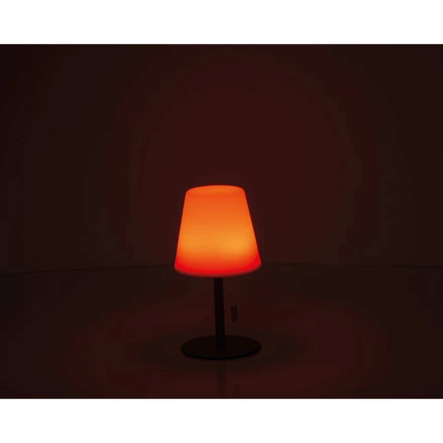 Mała lampka z funkcją zmiany kolorów, w kompaktowym rozmiarze (Ø 11 × 20 cm), z czasem pracy od 4 do 10 godzin, napięciem 3,7 V oraz wbudowanym, ładowalnym akumulatorem o pojemności 1200 mAh. Idealna do ogrodu, na taras lub balkon. Lampa tworzy przyjemną atmosferę na świeżym powietrzu dzięki różnorodnym kolorom światła.