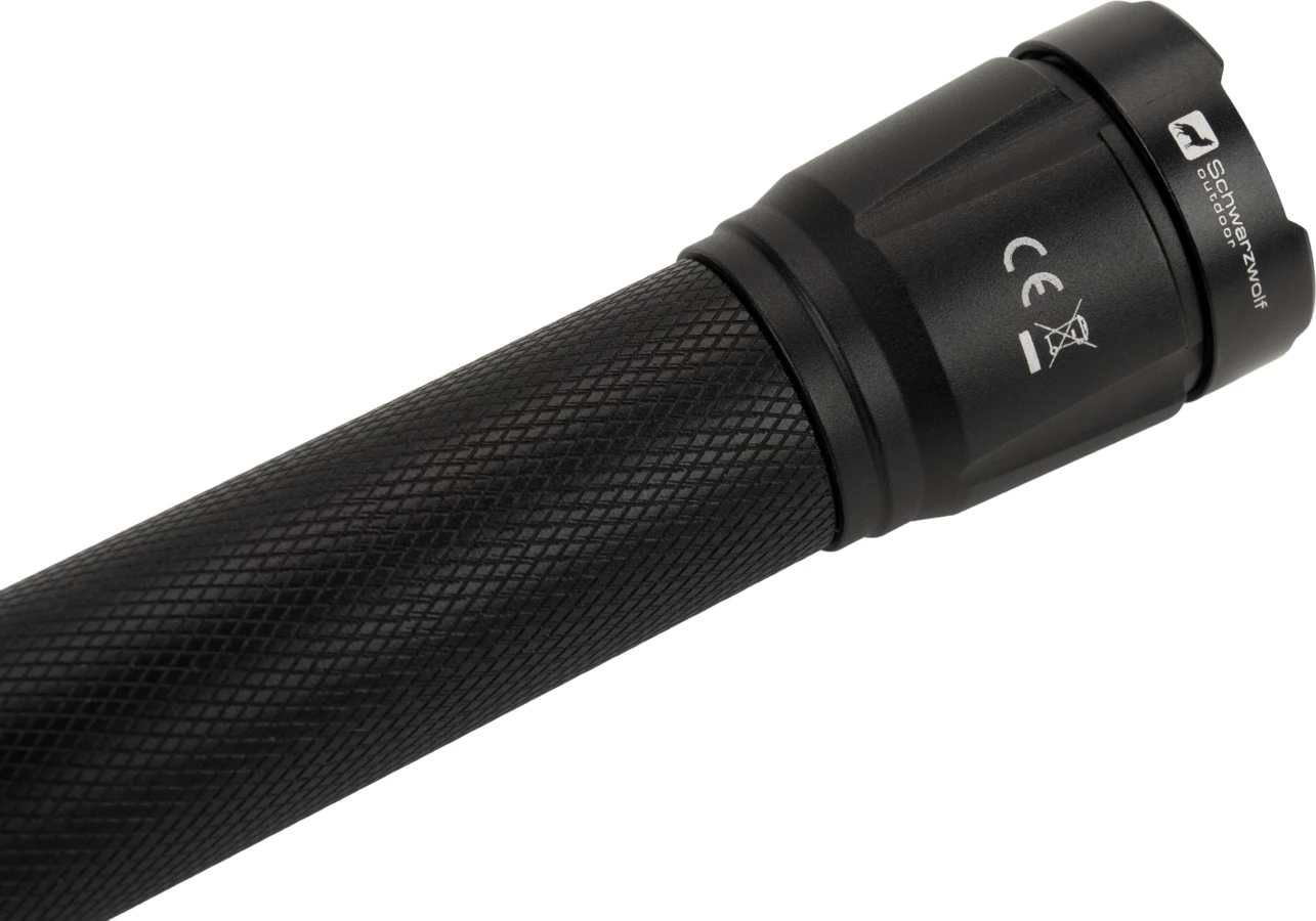Latarka Outdoorowa Schwarzwolf. Zawiera diodę 3x CREE XPE LED i 3 tryby świecenia: mocne, średnie i migające. W zestawie dołączone są baterie 2 × AA.