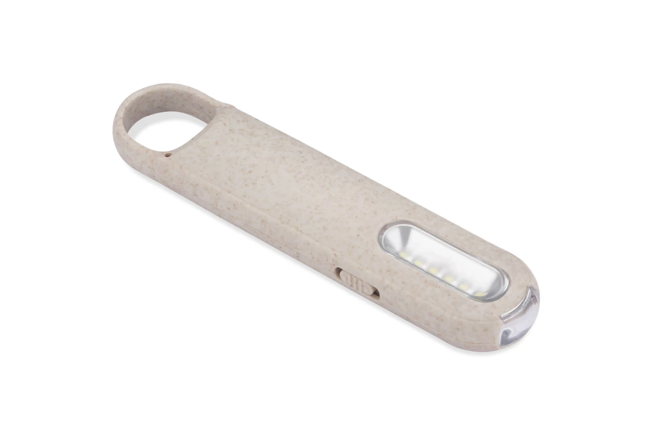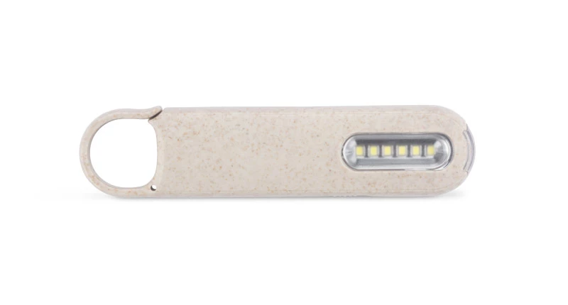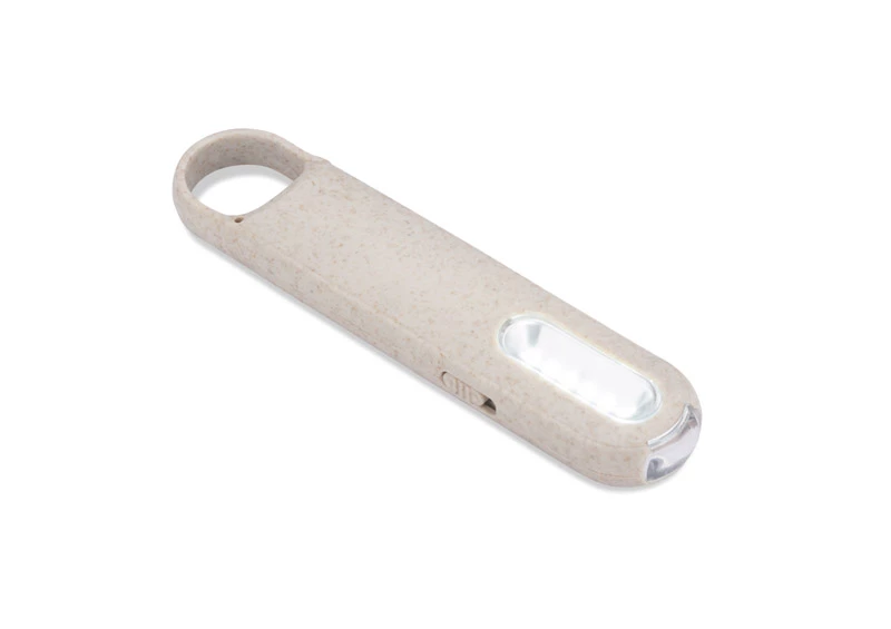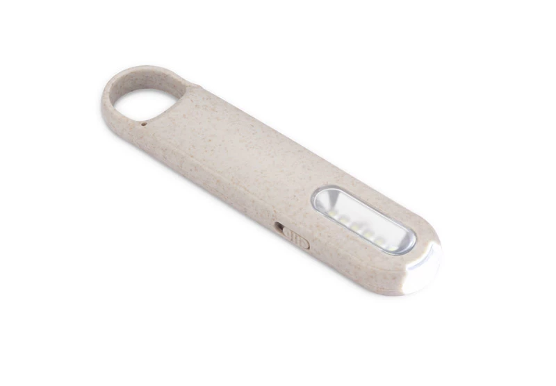 Latarka PROKO zawiera w sobie dwa rodzaje latarki LED: punktową oraz przestrzenną. Włączana jest w prosty sposób przez przełącznik z boku produktu. Wykonana z materiału z domieszką słomy pszennej. Praktyczny uchwyt pozwala wygodnie zawiesić lub zaczepić latarkę. Zasilanie bateriami: 3 x AAA.