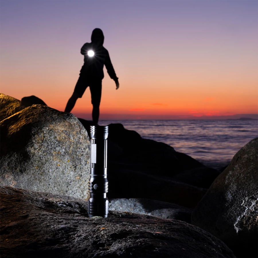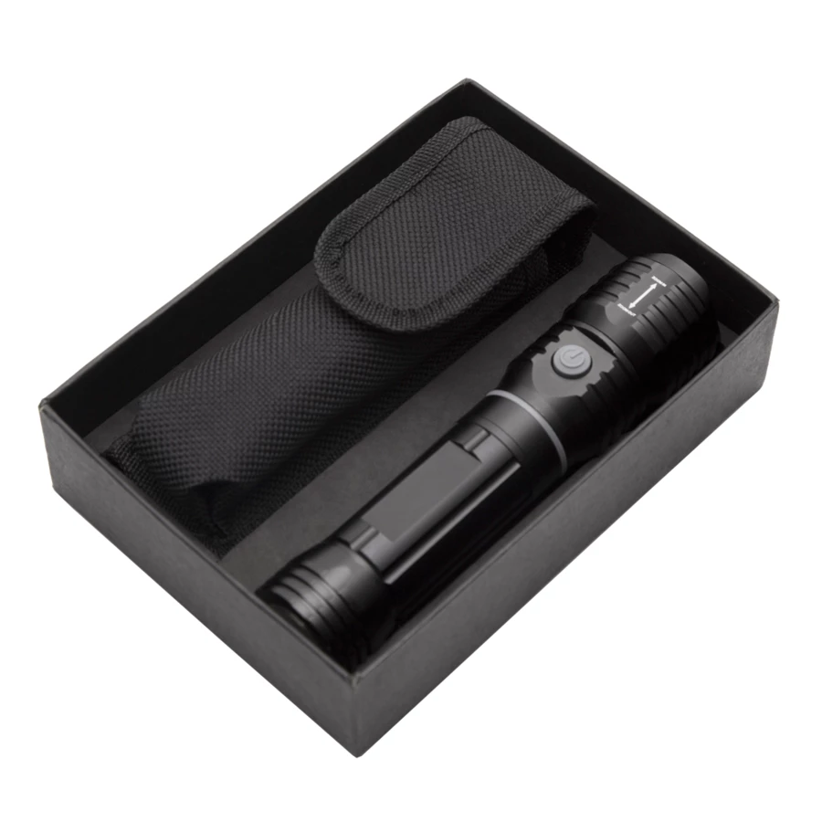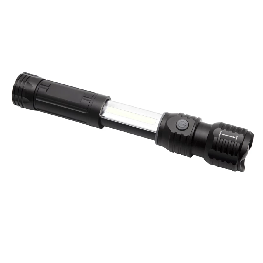 Doskonała latarka dla wymagających o strumieniu światła 250 lumenów i zasięgu 200 metrów, dioda CREE XPG (5 W). Wyposażona w wysuwany panel roboczy zasilany 16 diodami COB (3W) 160 lumenów o żywotności 100 000 godzin. Magnes umieszczony u podstawy. Funkcja zoom. Nylonowe etui. Zasilana 4 bateriami AAA (dołączone). Pakowana w upominkowe opakowanie.