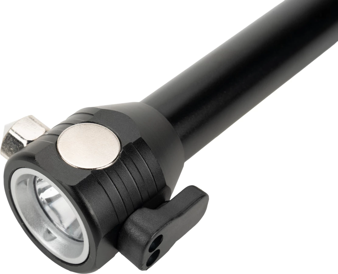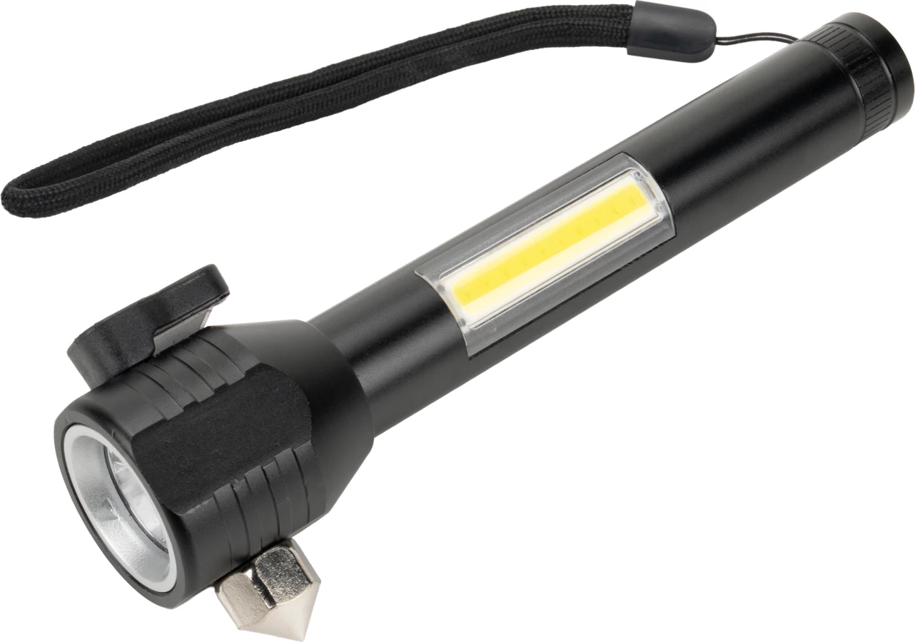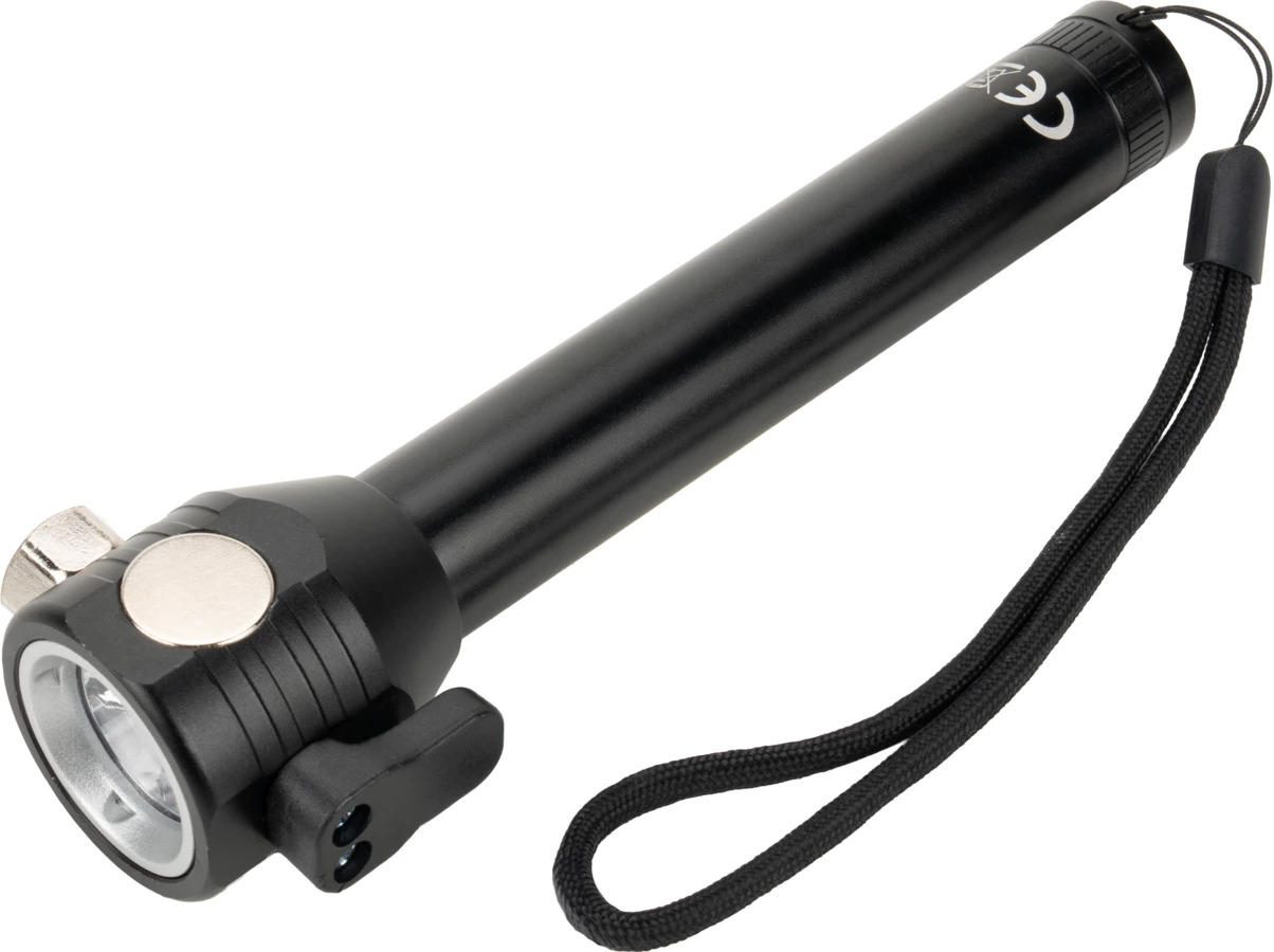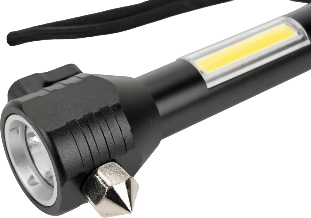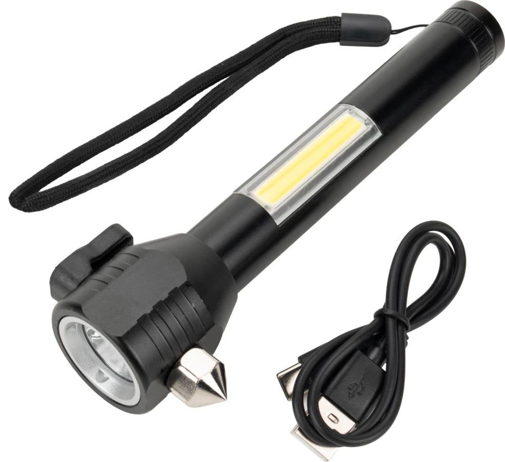 Latarka o mocy 3W/120 lumenów oraz bocznym światłem o mocy 3W/250 lumenów, z baterią o pojemności 500 mAh, ładowaną na USB typu C. Dodatkowo latarka posiada magnes, młotek awaryjny do szyb oraz przecinak do pasów bezpieczeństwa.