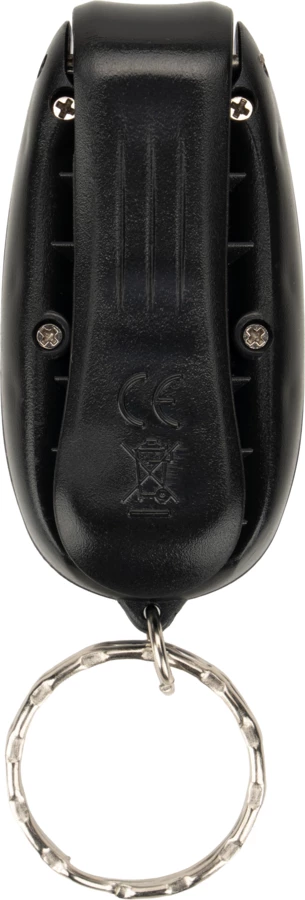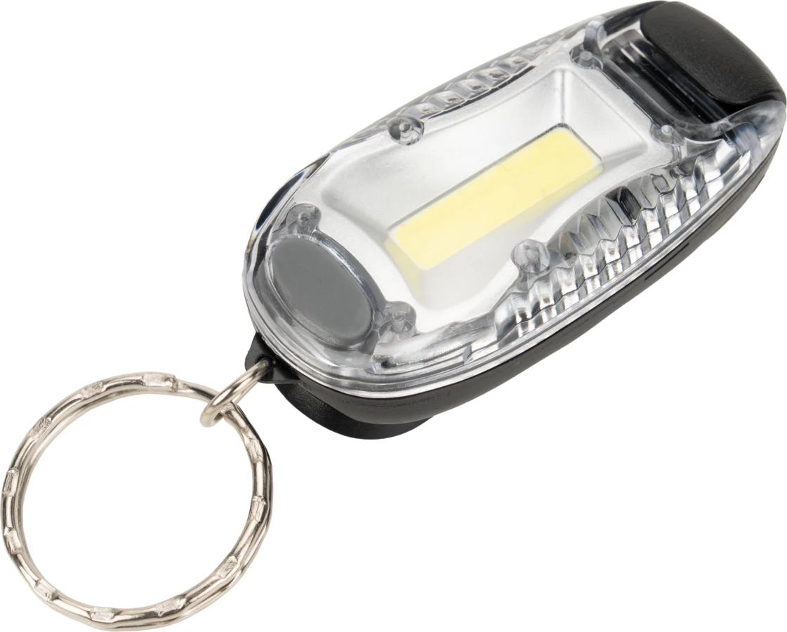 Mała latarka marki Schwarzwolf z diodą COB oraz funkcją migania. Latarkę można mocować za pomocą breloczka lub plastikowego klipsa. Jasność: 40 lumenów. Baterie 2 × 3 V CR2032 w zestawie.