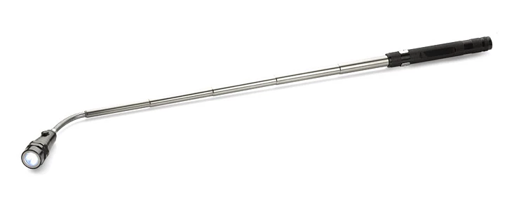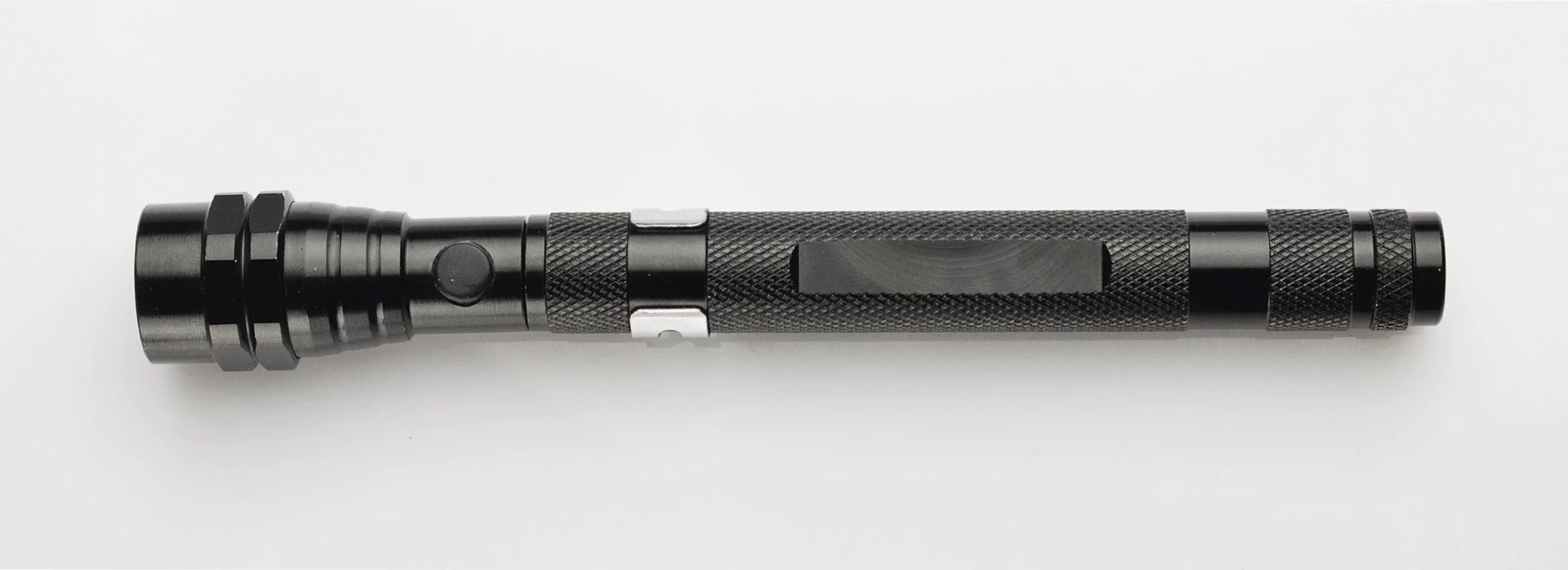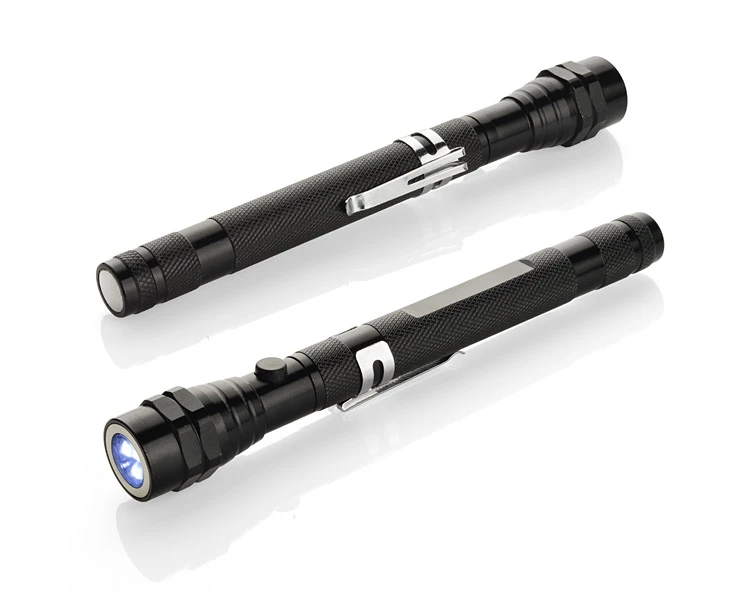 Niesamowity gadżet o licznych zastosowaniach. Wykonana w całości z metalu latarka posiada rozsuwany, teleskopowy korpus oraz ruchomą główkę z 3 diodami LED. Dodatkowym atutem są magnesy umieszczone na obydwu końcach latarki. Konstrukcja jest bardzo solidna i wyposażona w metalowy klip do zawieszenia. Znakowanie możliwie na specjalnie przygotowanej płaskiej powierzchni na rękojeści.