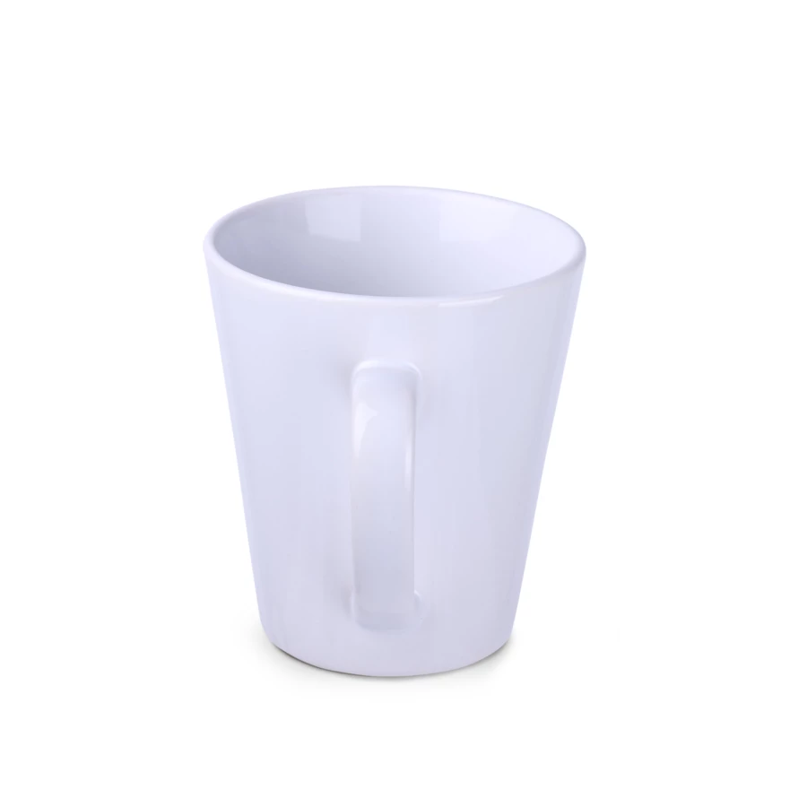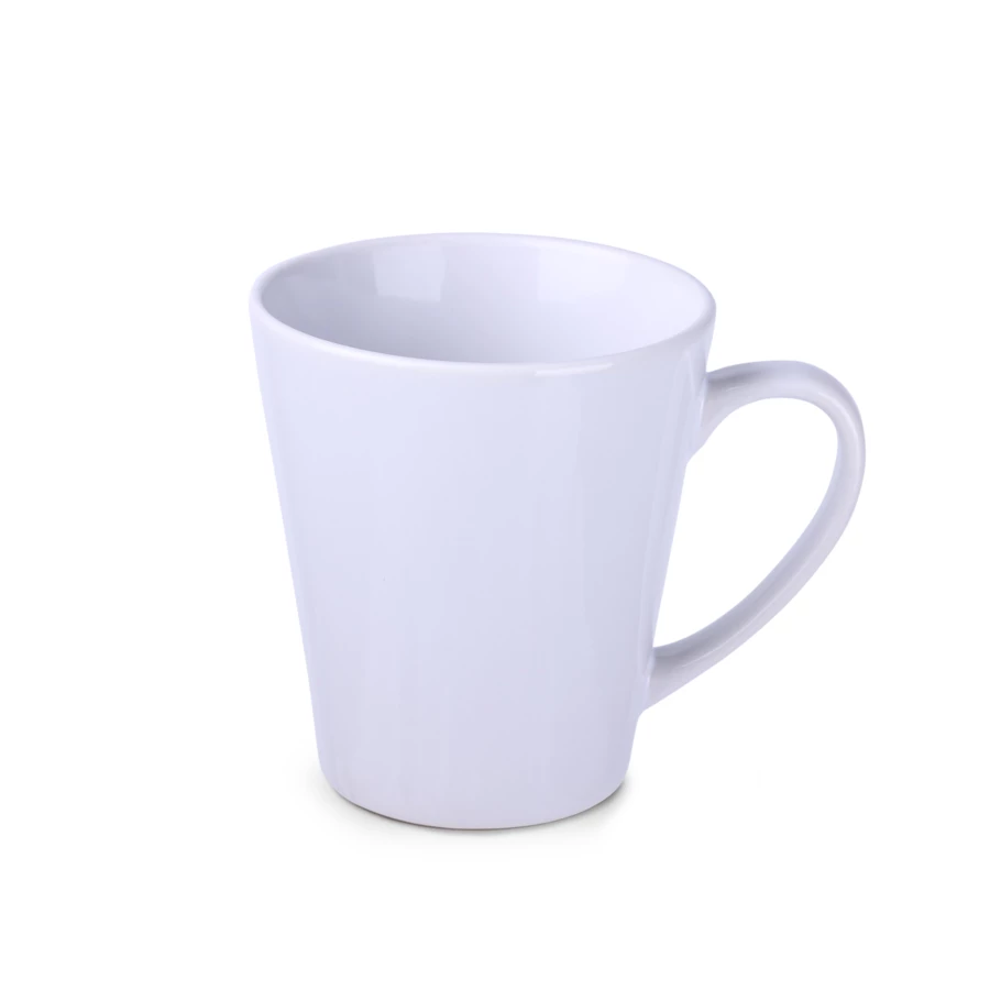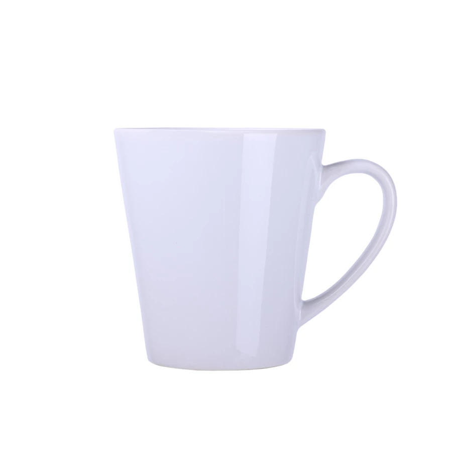 Kubek sublimacyjny o klasycznym trapezowym kształcie. Można nanosić na niego nadruki w fotograficznej jakości. Posiada ergonomiczne ucho.