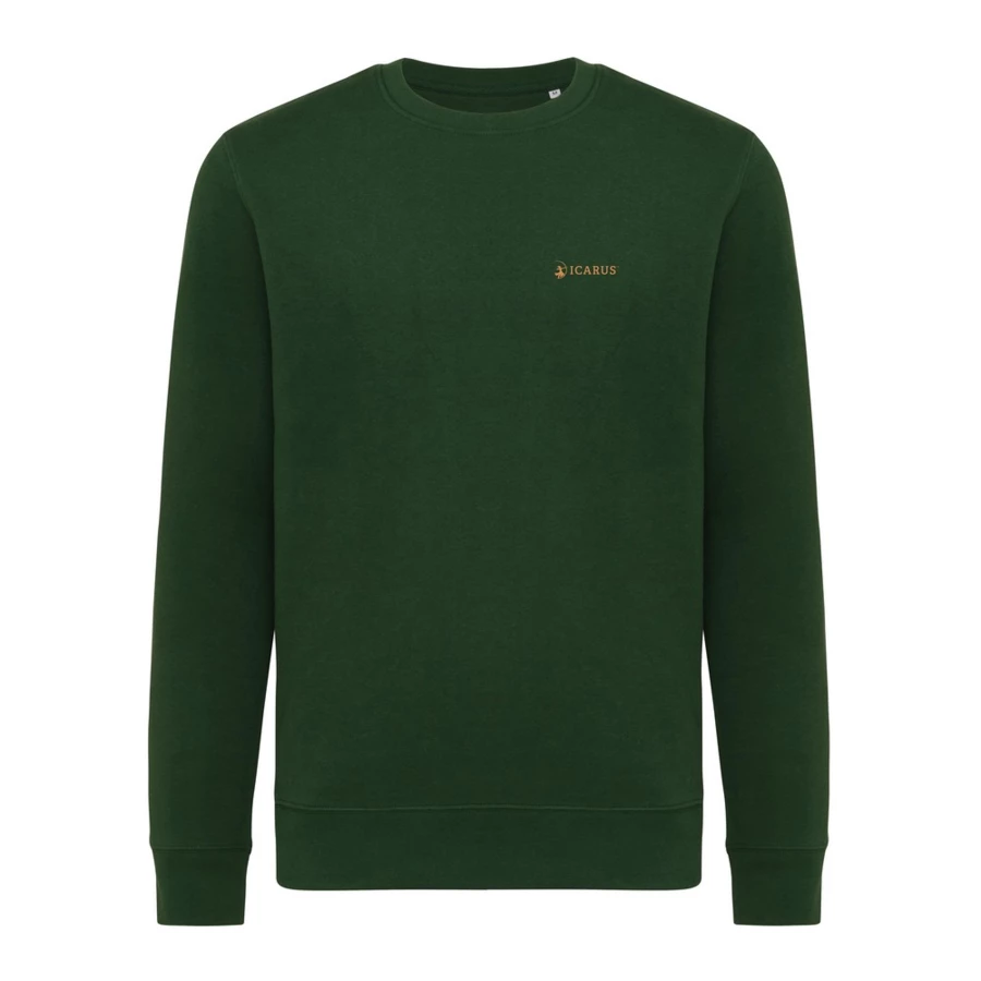 Lekki sweter, unisex, regularny krój, okrągły dekolt, długie rękawy, wykonana w 30% z bawełny z recyklingu i w 70% z bawełny organicznej o gramaturze 280 g/m2, posiada wbudowany znacznik AWARE™, który potwierdza wykorzystanie materiałów z recyklingu, posiada kod QR na metce, który prowadzi do cyfrowego paszportu produktu, 2% wpływów z każdego sprzedanego produktu z kolekcji Impact jest przekazywane na rzecz Water.org, ślad węglowy produktu: 7,05 kg CO2