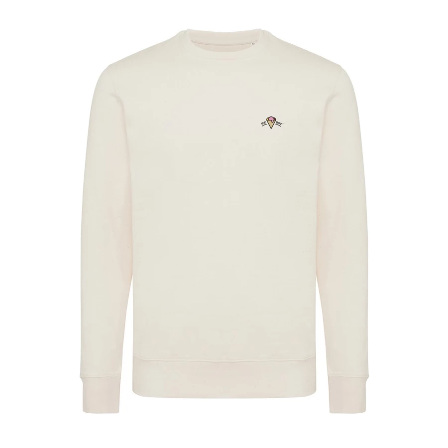 Lekki sweter, unisex, regularny krój, okrągły dekolt, długie rękawy, wykonana w 30% z bawełny z recyklingu i w 70% z bawełny organicznej o gramaturze 280 g/m2, posiada wbudowany znacznik AWARE™, który potwierdza wykorzystanie materiałów z recyklingu, posiada kod QR na metce, który prowadzi do cyfrowego paszportu produktu, 2% wpływów z każdego sprzedanego produktu z kolekcji Impact jest przekazywane na rzecz Water.org, ślad węglowy produktu: 5,59 kg CO2
