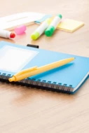 Kolorowy, plastikowy długopis z niebieskim wkładem.