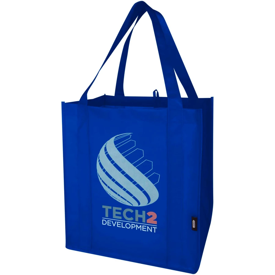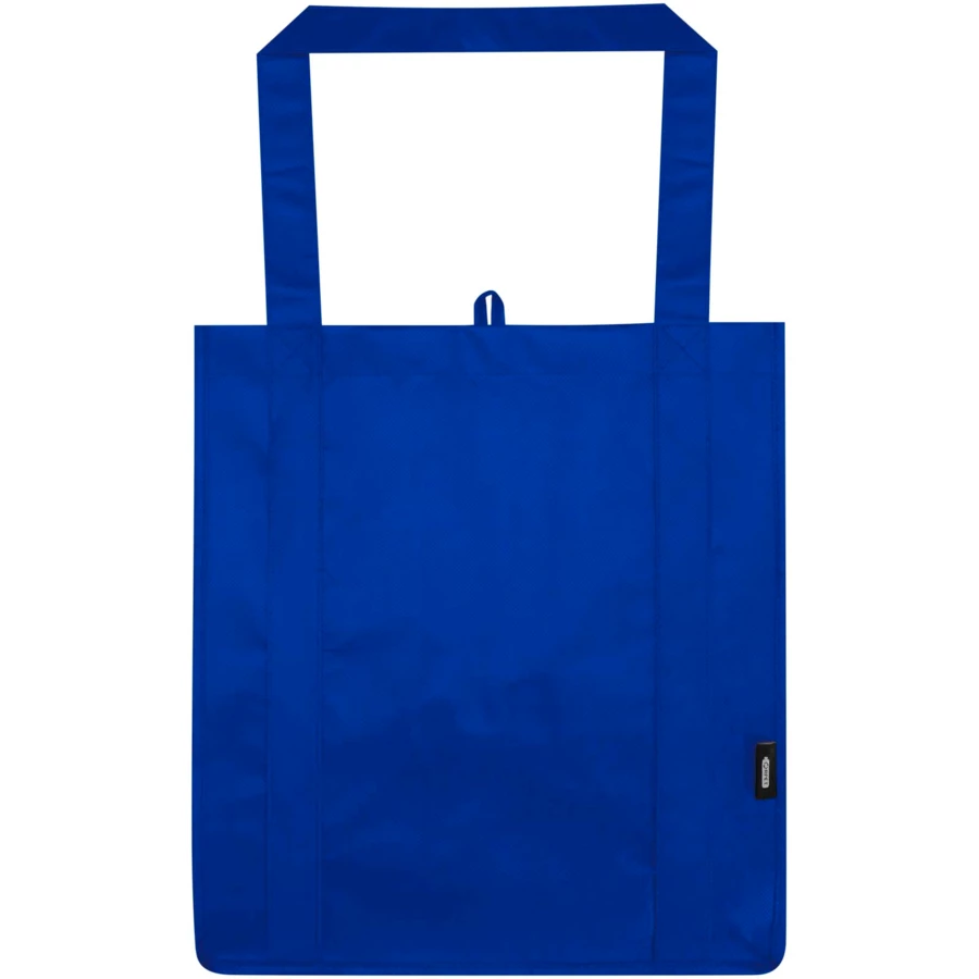Wykonana z trwałej i odpornej na rozdarcia włókniny RPET z recyklingu z certyfikatem GRS torba na zakupy Liberty ma sztywne dno, dzięki czemu jest uniwersalna i solidna. Torba posiada dużą komorę główną i uchwyty o długości 25 cm. Pojemność: 29 litrów. Wytrzymałość do 12 kg.