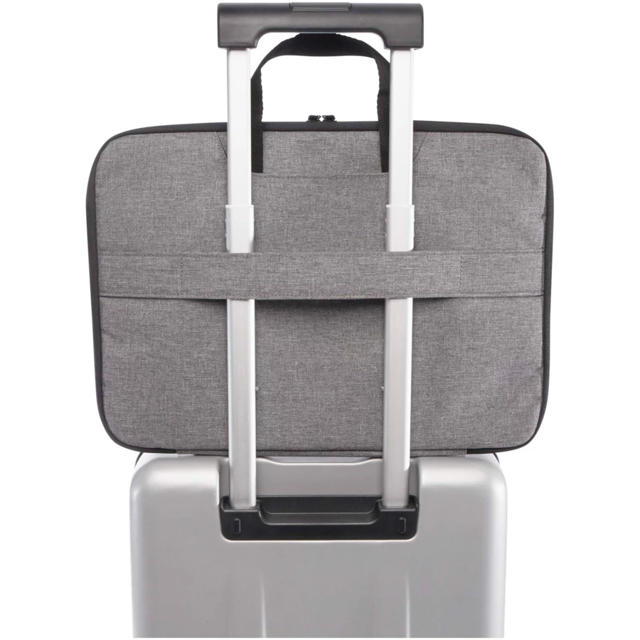 Etui 2 w 1 na laptopa Libra doskonale nadaje się do codziennych dojazdów do pracy lub podróży ze względu na przemyślane funkcje i design. Etui jest wykonane z poliestru z recyclingu z certyfikatem GRS i ma podszewkę RPET. Ma zapinaną na zamek błyskawiczny główną komorę, którą można otworzyć o 180 stopni, aby ułatwić kontrolę bezpieczeństwa. Torba posiada również z jednej strony kieszeń na laptopa wykonaną z neoprenu wysokiej jakości, 2 kieszenie z siatki z drugiej strony, kieszeń z przodu zapinaną na zamek, pasek do wózka z tyłu oraz dwie otwarte kieszenie na dodatkowe przedmioty, do których można włożyć również uchwyty parciane, zmieniając torbę w etui na laptopa.