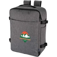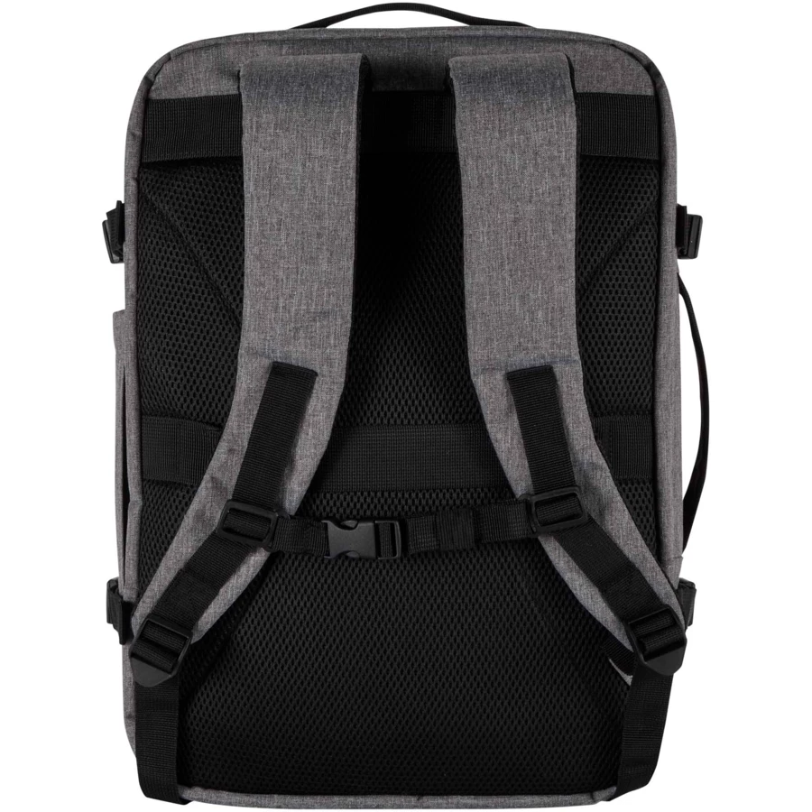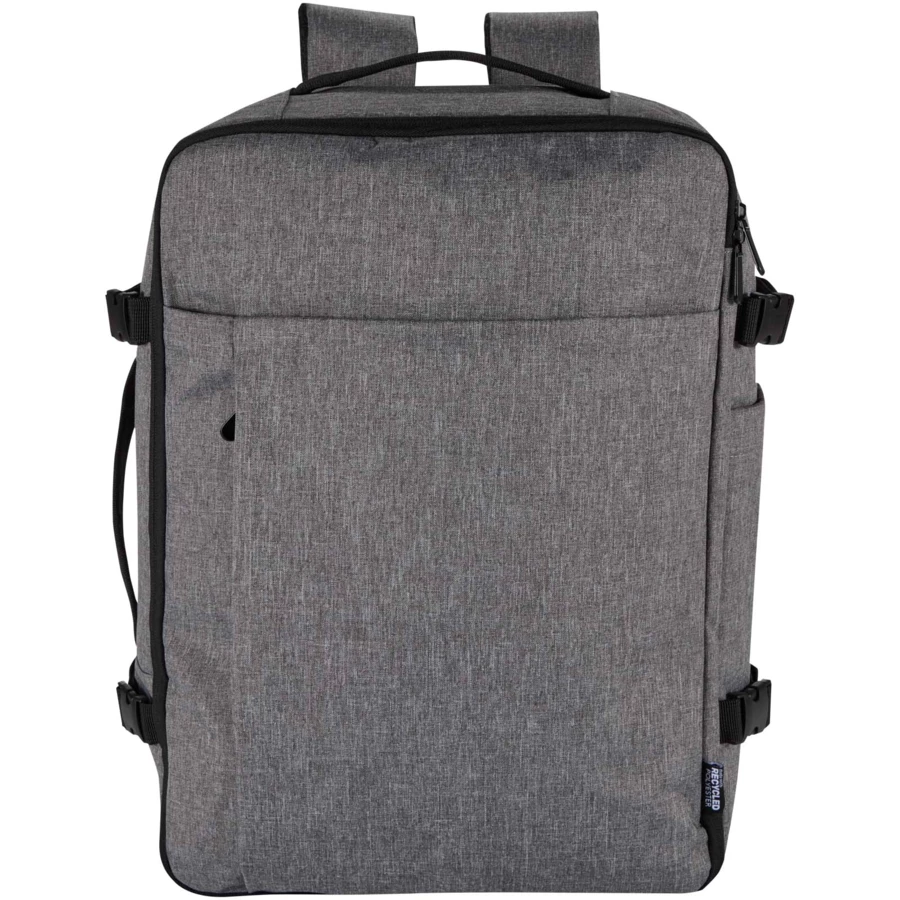 Plecak podręczny Libra o długości 43 cm wykonany jest z poliestru z recyklingu z certyfikatem GRS, z podszewką z tworzywa RPET. Został on zaprojektowany tak, aby spełniać wymagania linii lotniczych dotyczące bagażu podręcznego. Dzięki temu będzie idealnym towarzyszem w podróży. Ma specjalną przegrodę na laptopa o przekątnej do 17 cali, przestronną komorę główną z elastycznymi paskami i przegrodami siatkowymi zapewniającymi bezpieczeństwo i porządek przechowywanych rzeczy, a także dwie duże przednie kieszenie zapinane na zamek, zapewniające łatwy dostęp do najpotrzebniejszych rzeczy. Dla zapewnienia komfortu i wygody plecak wyposażono w przewiewny tylny panel, pasek na bagaż, regulowane paski na ramiona z paskiem poprzecznym na klatkę piersiową oraz uchwyty górne i boczne, które umożliwiają wszechstronne wykorzystanie. Ten plecak, idealny na podróże służbowe, pracę zdalną lub weekendowe wyjazdy, łączy w sobie elegancki design z praktyczną funkcjonalnością, sprawdzającą się w życiu w ciągłym ruchu.