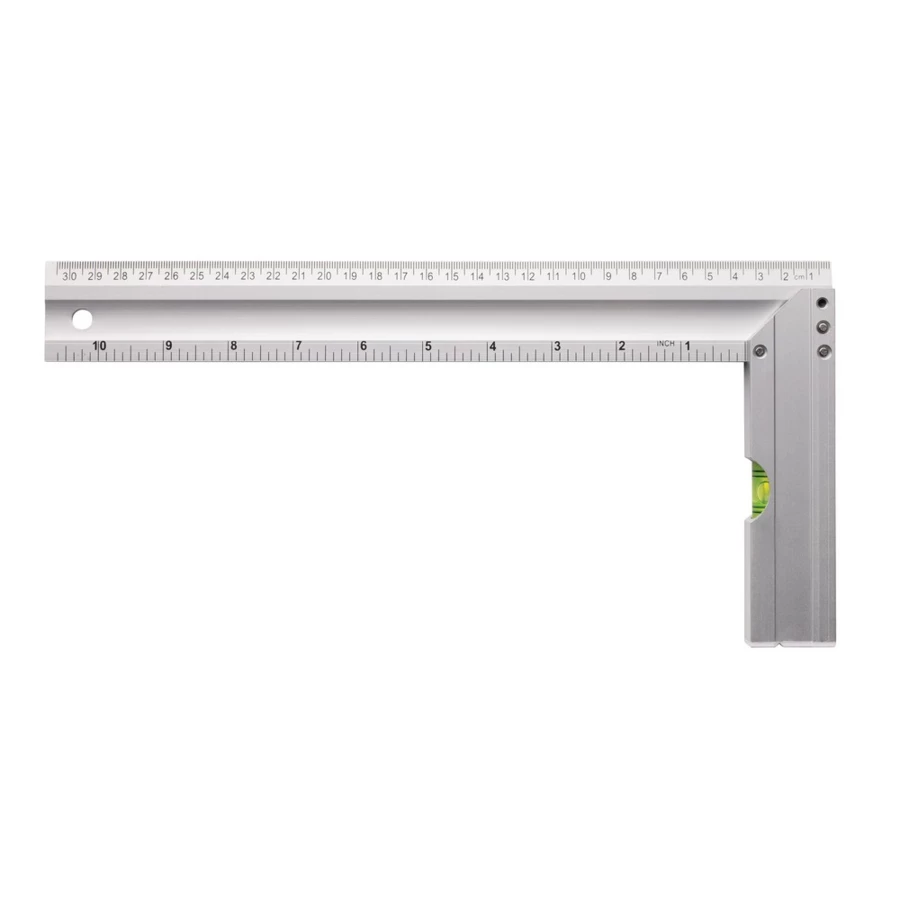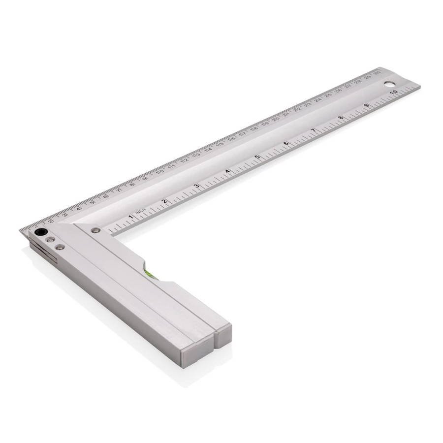 Linijka 30 cm, 2 skale (cm i cale), poziomica, kątomierz, wykonana z aluminium, ślad węglowy produktu: 2,53 kg CO2