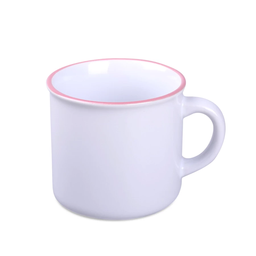 Kubek sublimacyjny o minimalistycznym i nowoczesnym designie. Posiada wnętrze w kilku odcieniach do wyboru. Można na niego nanosić nadruki w fotograficznej jakości. Posiada ciekawy akcent w postaci występującego w trzech modnych odcieniach paska na rancie.