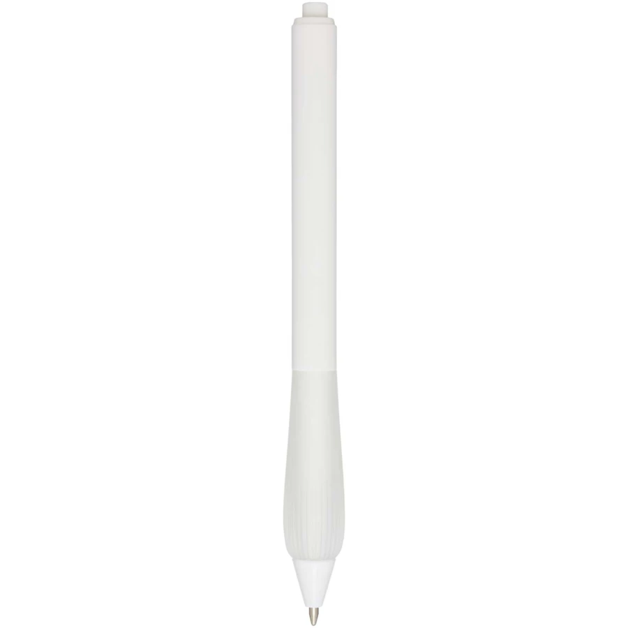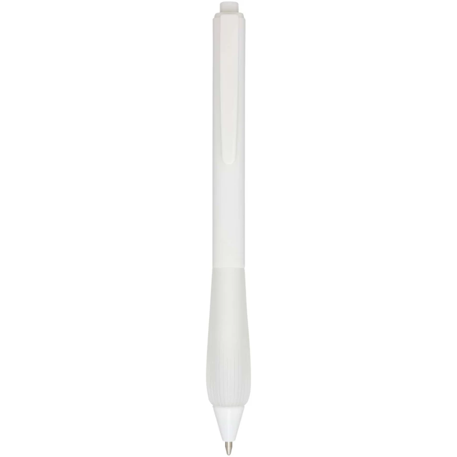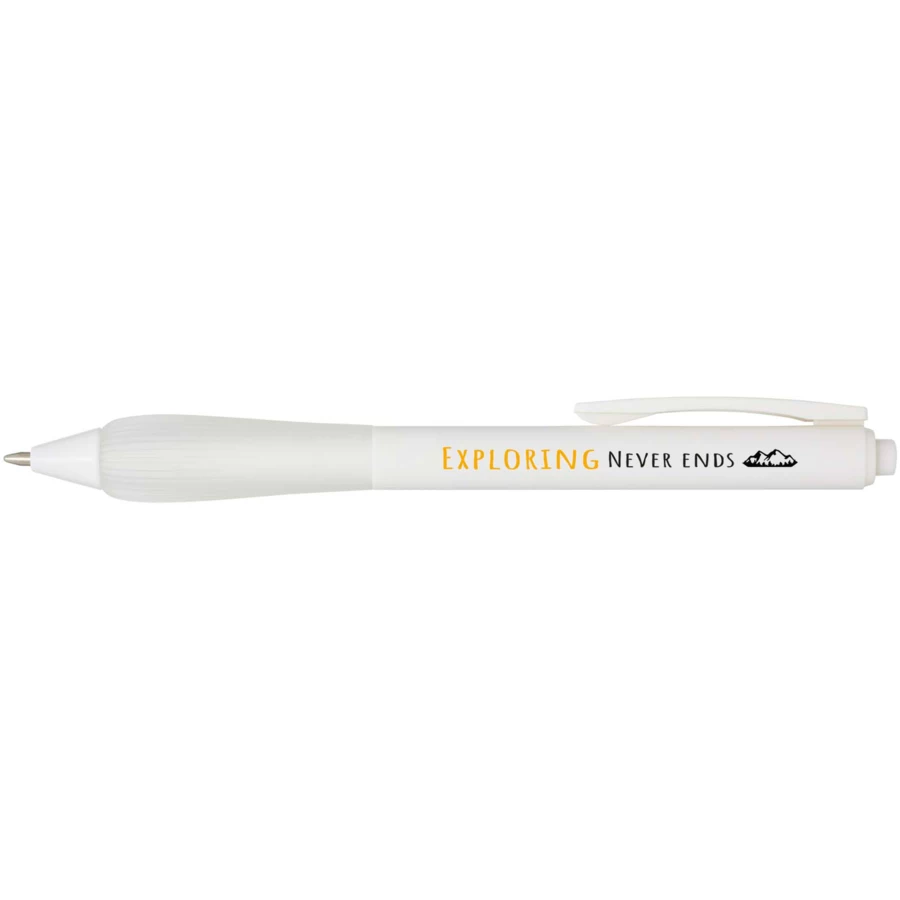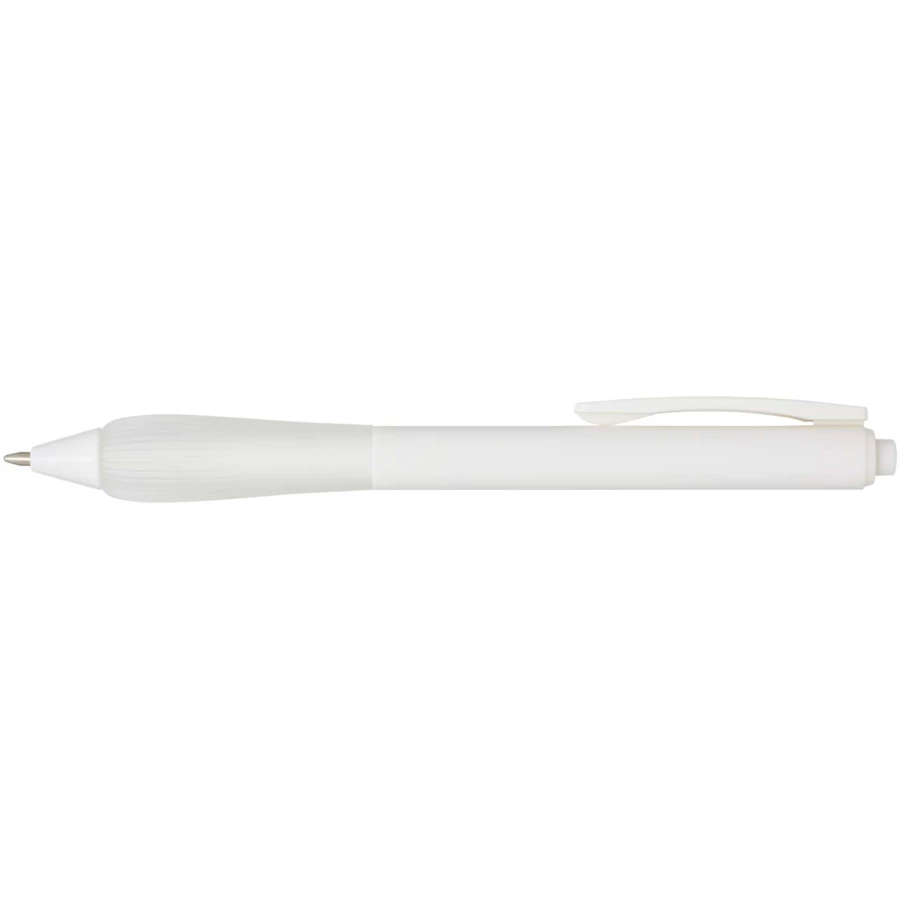 Długopis z tworzyw sztucznych pochodzących z recyklingu, z gumowanym korpusem i uchwytem wykonanym z TPR. Kolor tuszu: Czarny. Żywotność: 1000 metrów. Rozmiar stalówki: 1,0 mm.