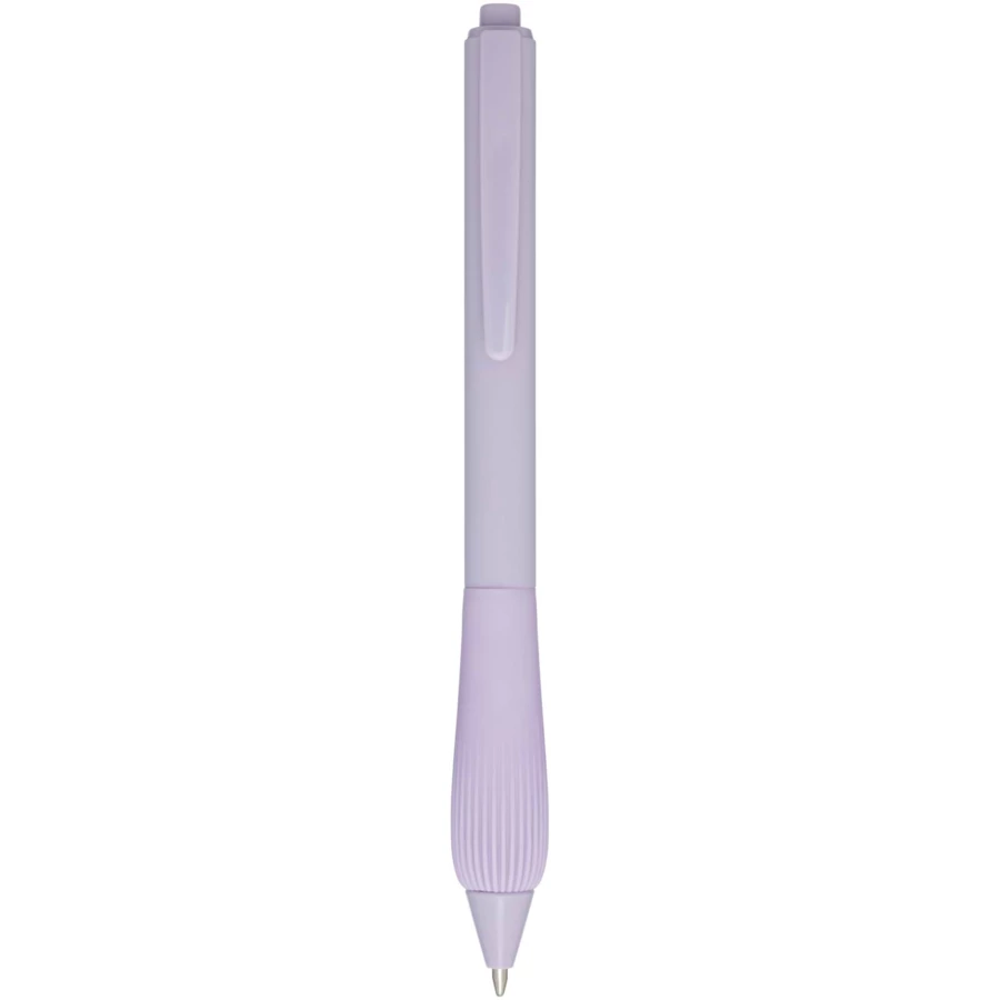 Długopis z tworzyw sztucznych pochodzących z recyklingu, z gumowanym korpusem i uchwytem wykonanym z TPR. Kolor tuszu: Czarny. Żywotność: 1000 metrów. Rozmiar stalówki: 1,0 mm.