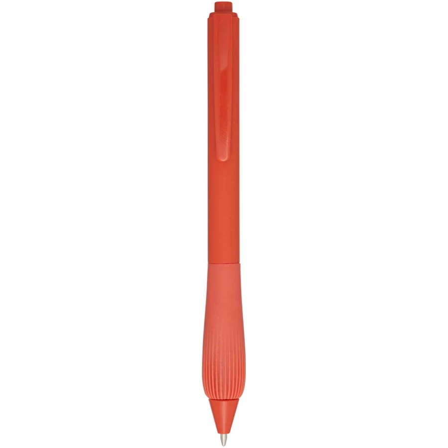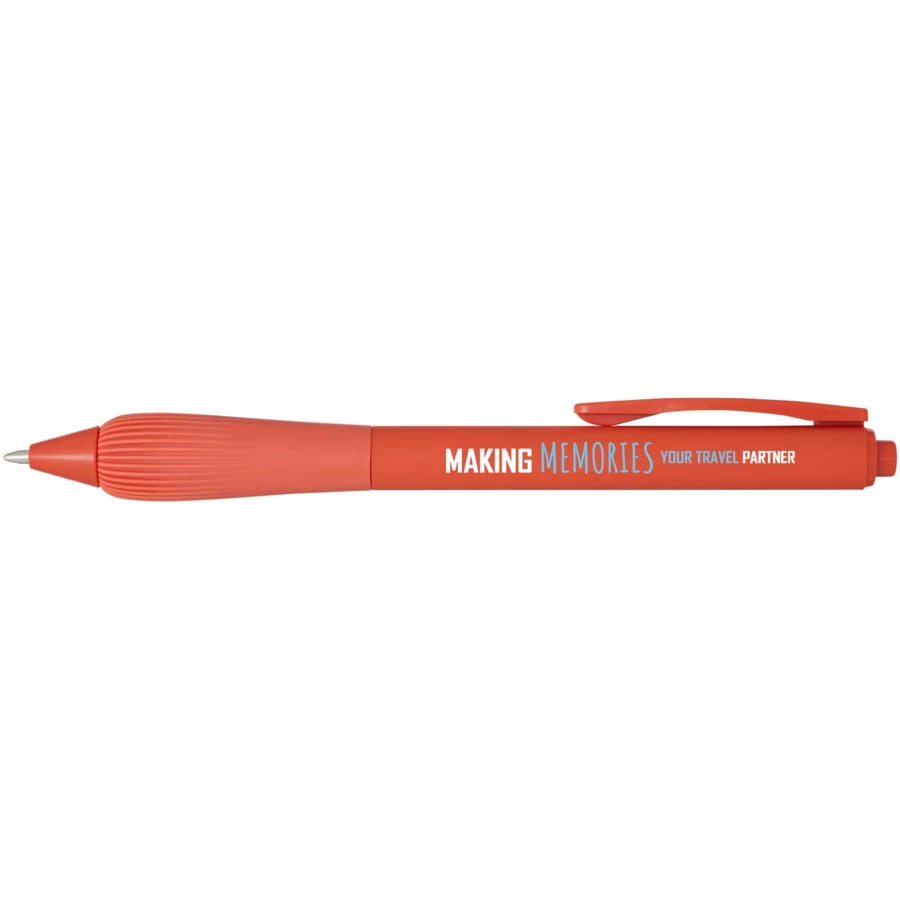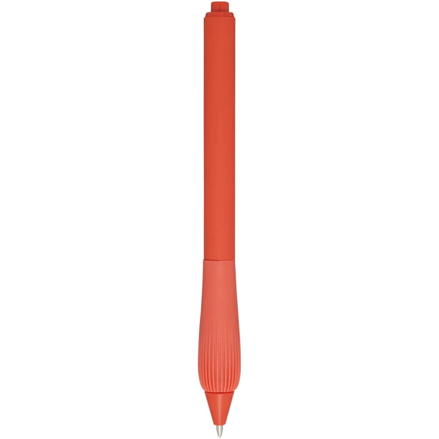 Długopis z tworzyw sztucznych pochodzących z recyklingu, z gumowanym korpusem i uchwytem wykonanym z TPR. Kolor tuszu: Niebieski. Żywotność: 1000 metrów. Rozmiar stalówki: 1,0 mm.