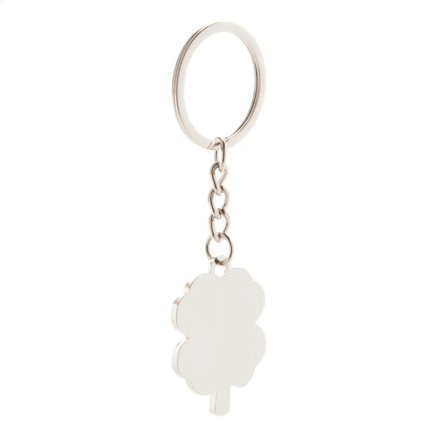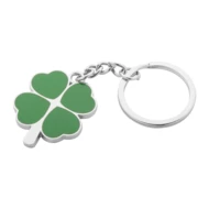 Metalowy, czterolistny brelok w kształcie koniczyny. W czarnym kartoniku.