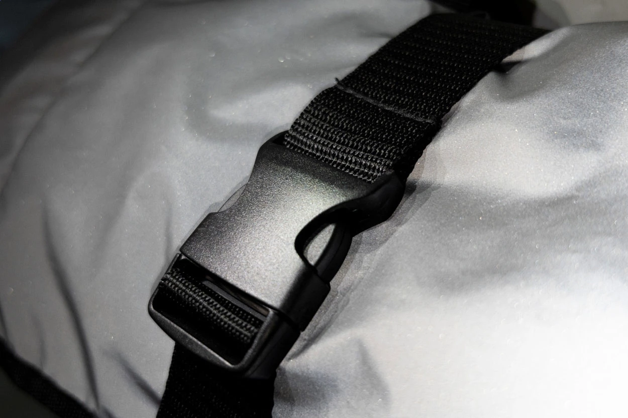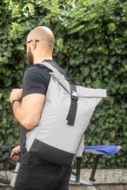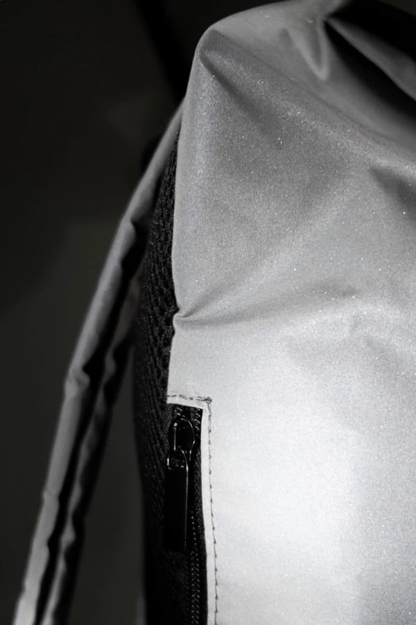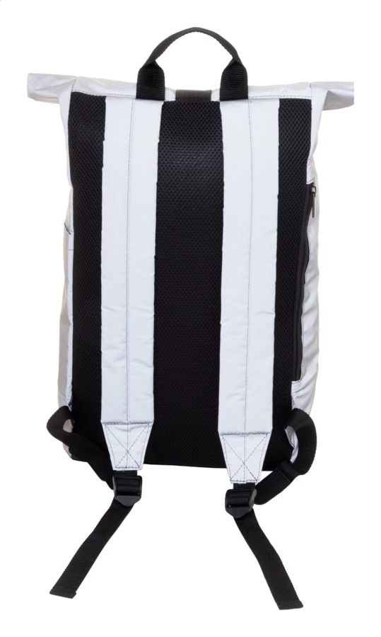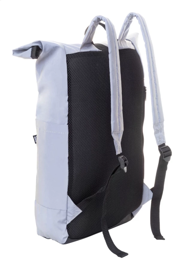 Odblaskowy plecak zwijany z poliestru RPET z kieszenią główną zapinaną na klamrę, ukrytą kieszenią na zamek, wyściełaną przegrodą na laptopa (15"), kieszenią boczną, wyściełanymi plecami i paskami na ramiona. Z charakterystyczną metką RPET. Produkt przeznaczony wyłącznie do celów promocyjnych nie kwalifikuje się jako sprzęt ochrony osobistej.