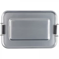 Trwałe i przyjazne środowisku pudełko na przekąski lub lunch, o pojemności 1000 ml. Wykonane z aluminium, wyposażone w dwa mocne zatrzaski zapewniające bezpieczne przenoszenie jedzenia.