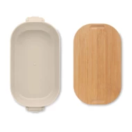 Pojemnik na lunch z PP z zapięciem z 2 stron i z bambusową pokrywką. Pojemność 700 ml.