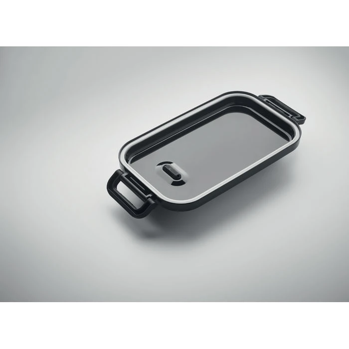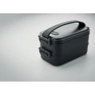 Dwupoziomowy pojemnik na lunch z PP z wyjmowaną przegrodą z bocznymi klamrami i hermetyczną pokrywką. Pojemność: 800 ml (2x).