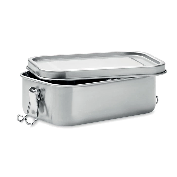 Lunchbox ze stali nierdzewnej z mocnymi bocznymi klamrami zapewniającymi szczelne zamknięcie. Pojemność 750 ml