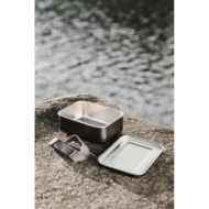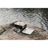 Pudełko śniadaniowe 750 ml, lunchbox, zamykane na pasek, solidne i szczelne, wykonane w 81% ze stali nierdzewnej z recyklingu, wykorzystane materiały posiadają certyfikat RCS który gwarantuje, że wykorzystane materiały pochodzą z recyklingu, zawartość materiału z recyklingu jest obliczana w oparciu o wagę całkowitą przedmiotu, wyłącznie do zimnych potraw, nie należy używać w kuchence mikrofalowej i myć w zmywarce