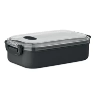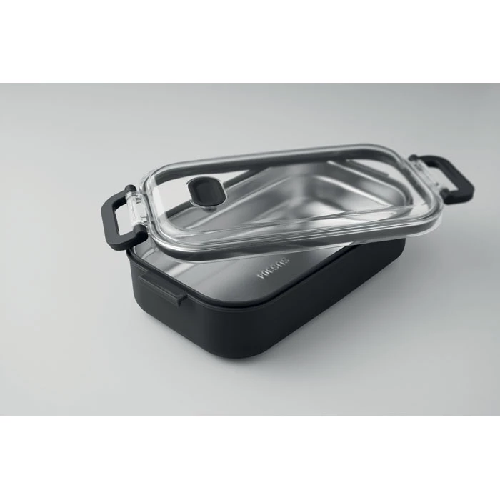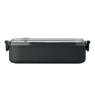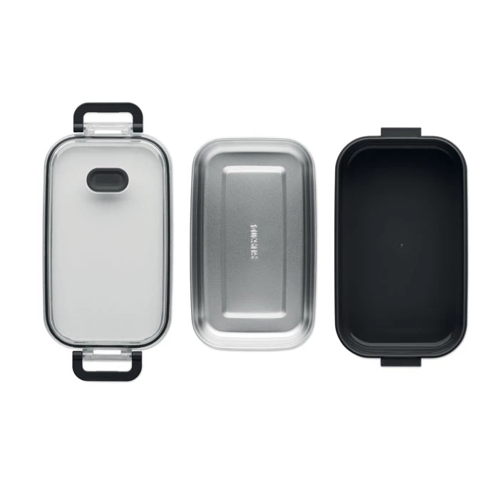Lunchbox z PP z dodatkową warstwą wewnętrzną z recyklingowanej stali nierdzewnej. Szczelna pokrywa AS zapewnia świeżość i bezpieczeństwo żywności. Pojemność 750 ml bez tacki i 650 ml z tacką.