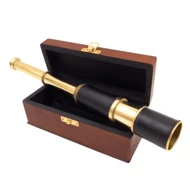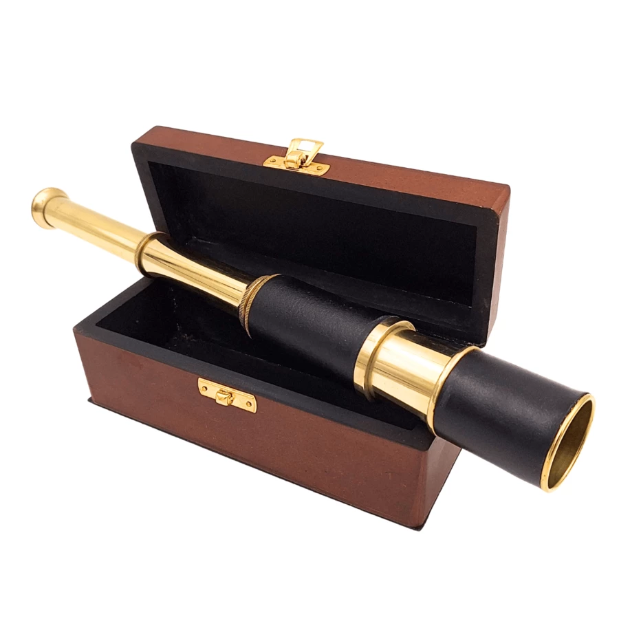 Luneta mosiężna w pudełku to idealny upominek dla mężczyzny, podróżnika, żeglarza lub pasjonata dawnych instrumentów optycznych. Świetnie sprawdzi się jako rekwizyt fotograficzny, dekoracja biura, gabinetu kapitańskiego czy stylowego salonu.