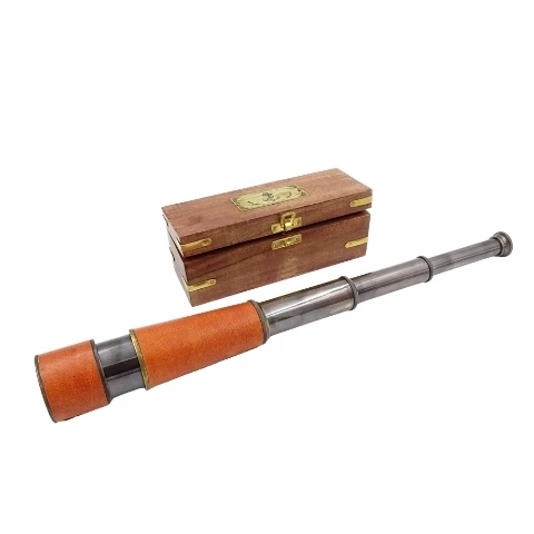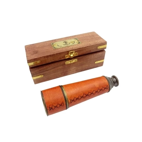 Luneta mosiężno-skórzana w pudełku drewnianym – NC2356B (NMT-224588)