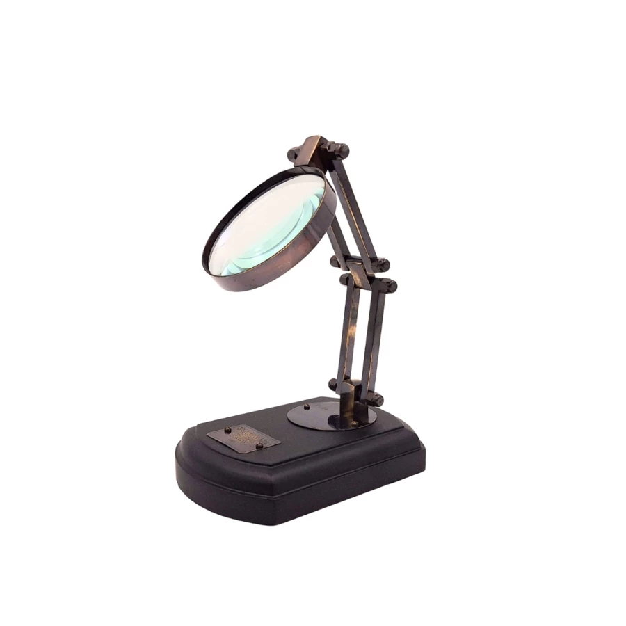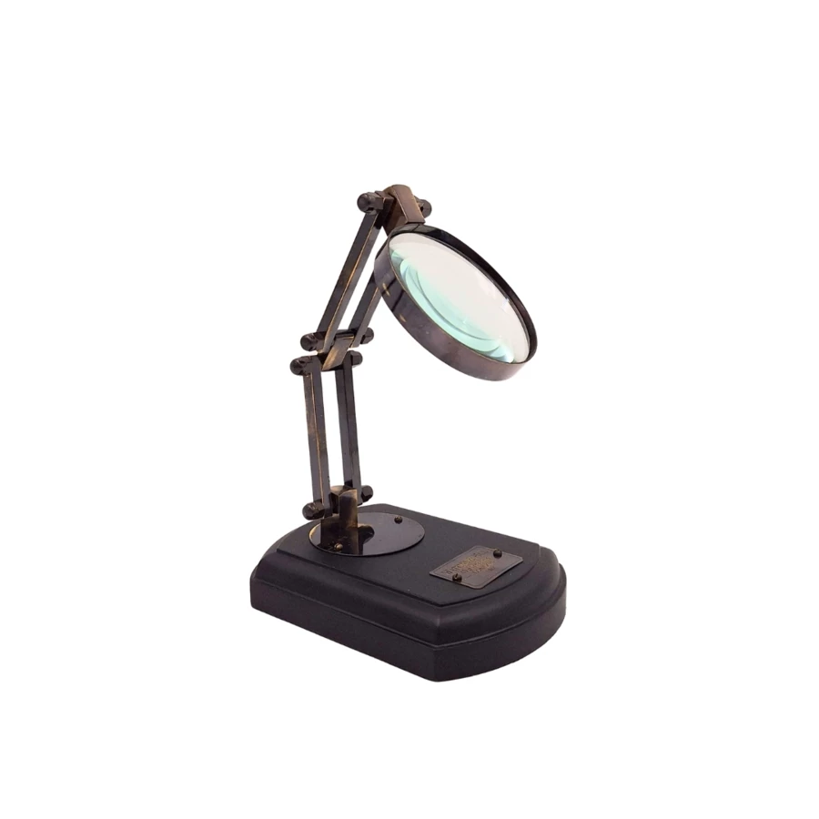 Lupa na drewnianej podstawie w stylu retro. Szkło powiększające na statywie doskonale sprawdzi się u wszystkich, którzy poza zoomem potrzebują również wolnych rąk do pracy, jak np. modelarze.