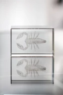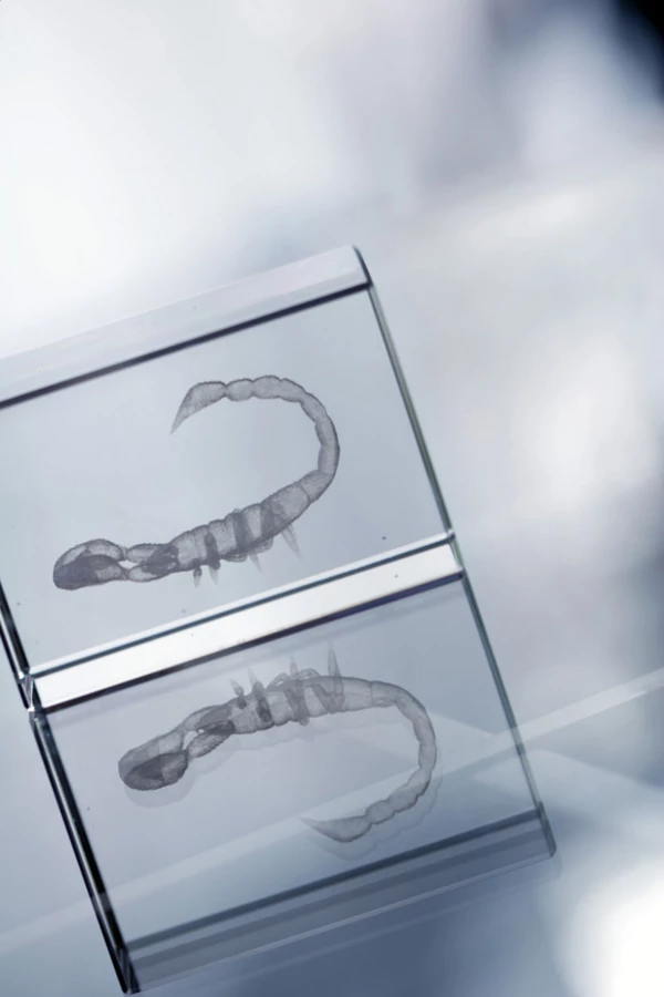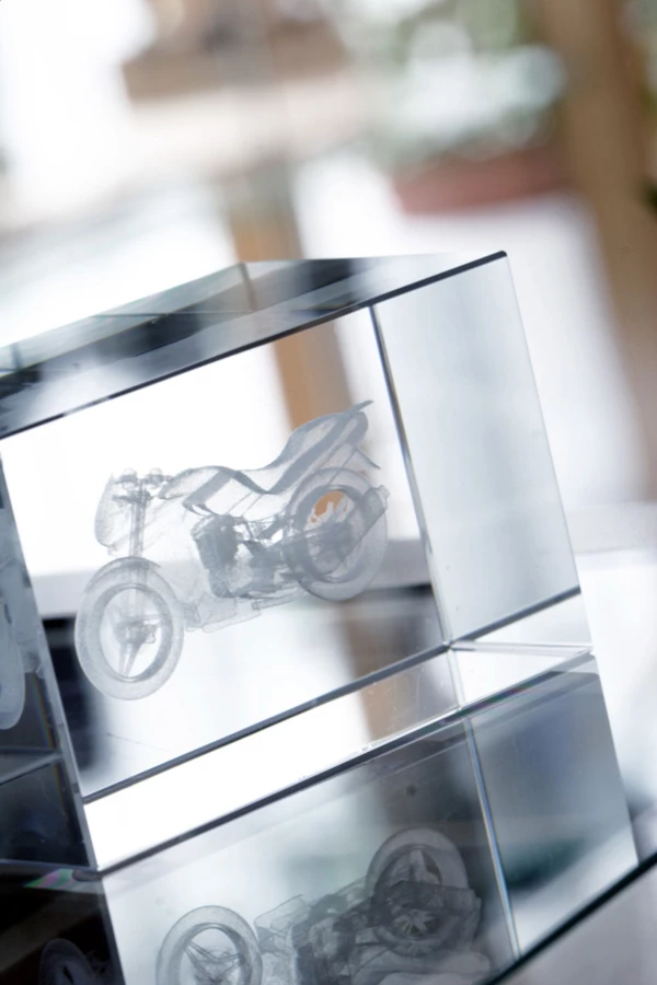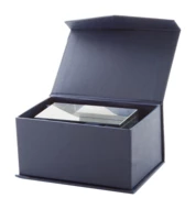 Szklana kostka. Produkt zapakowany w ozdobne pudełko, zamykany na zatrzask magnetyczny.