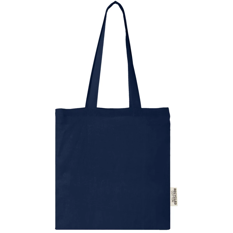 Torba na zakupy Madras wykonana w 100% z bawełny z recyklingu z certyfikatem GRS idealnie nadaje się do rozdawania podczas dowolnej imprezy czy konferencji lub do zakupów lub drobnych artykułów spożywczych. Bawełna o gramaturze 140 g/m² sprawia, że torba jest mocna, trwała i nadaje się do noszenia ciężkich przedmiotów w głównej komorze. Dzięki uchwytom na ramię o długości 30 cm torbę można łatwo przenosić. Metody nadruku dostępne dla tej torby tote posiadają również certyfikat GRS, co zapewnia, że cały łańcuch dostaw jest przejrzysty i certyfikowany. Wyprodukowano w Indiach. Wytrzymałość do 5kg.
