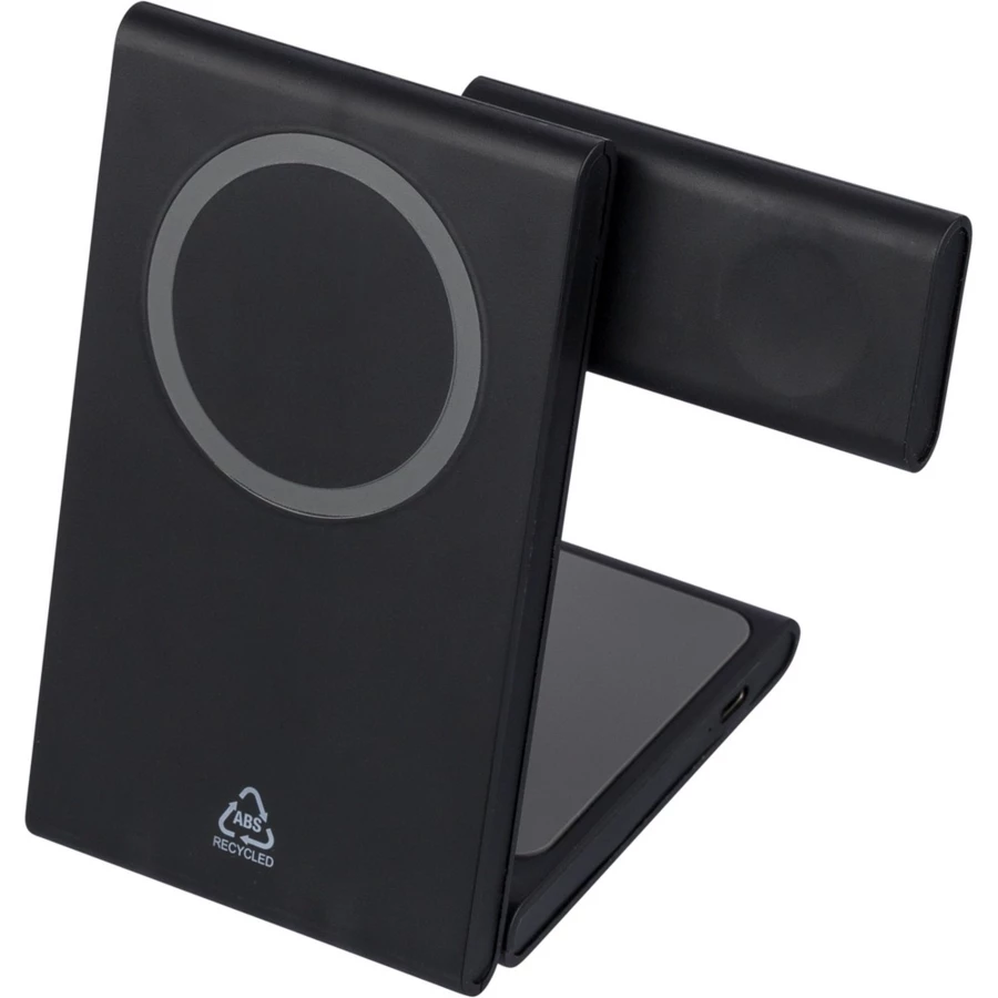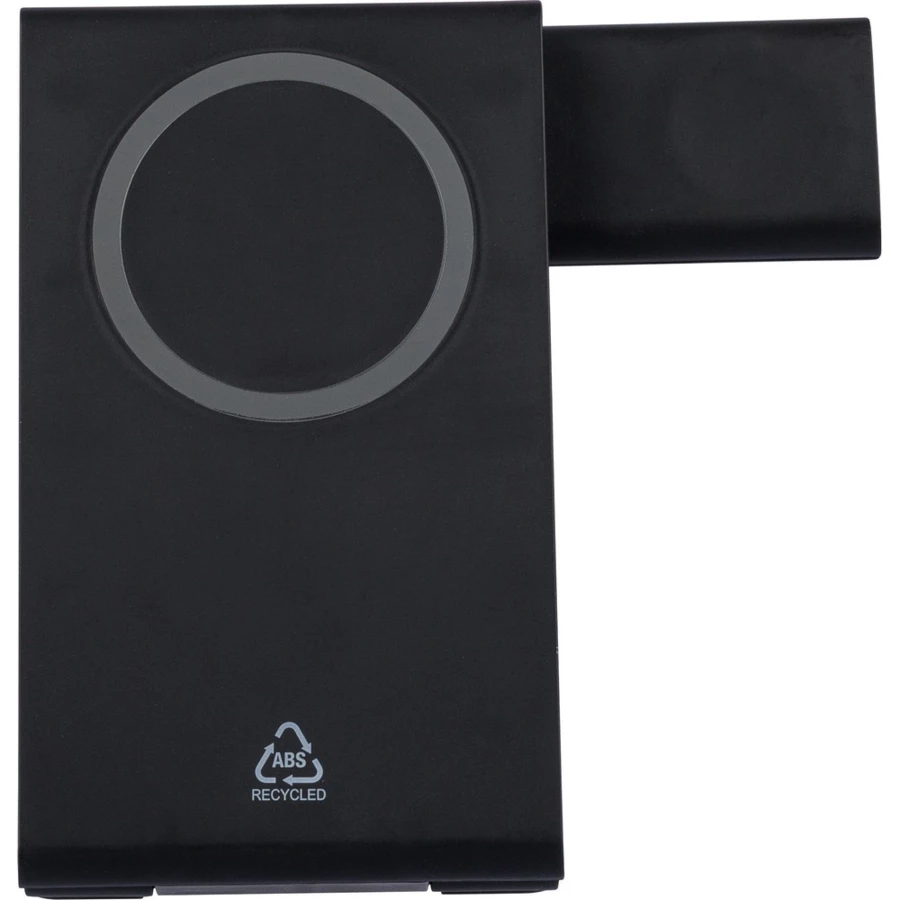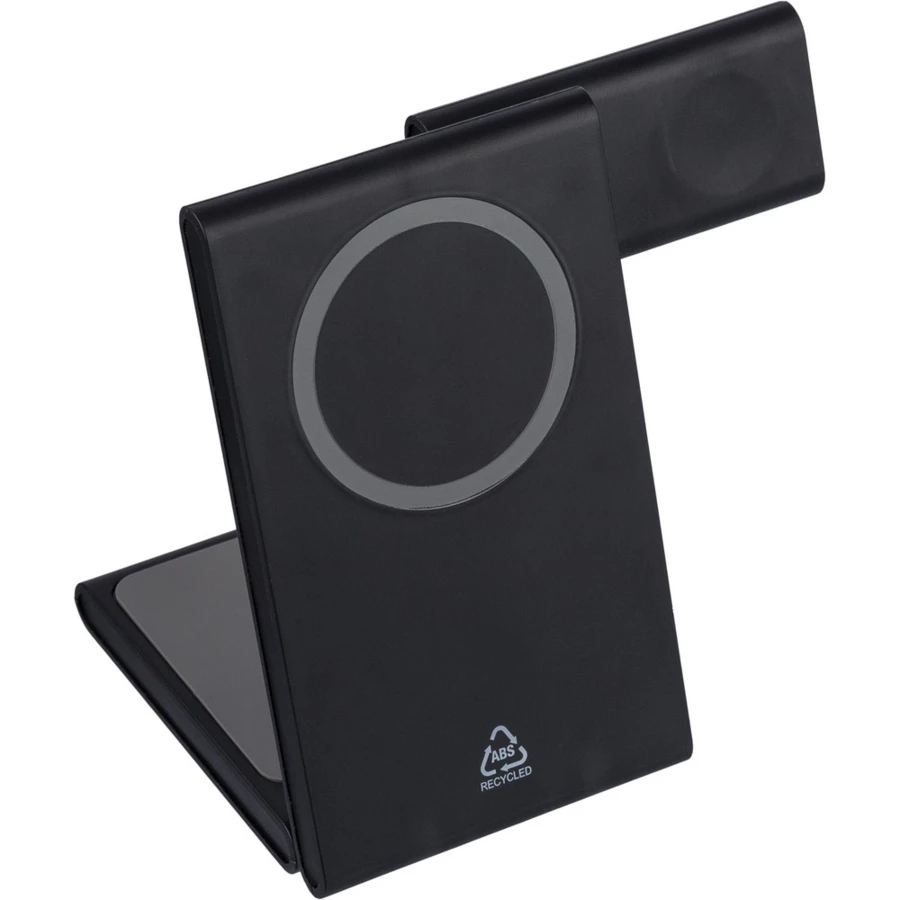 Magnetyczna ładowarka bezprzewodowa 3 w 1, 15W, ładowarka do telefonu, ładowarka do smartwatcha 2W, ładowarka do słuchawek 2W, kompatybilna z urządzeniami iOS, wejście: 5V/3A, 9V/3A, wyjście: 5V/1A, 9V/1.1A, 9V/1.67A, zawiera ikonę recyklingu na produkcie, pakowana pojedynczo w brązowy kartonik, produkt wykonany z ABS z recyklingu