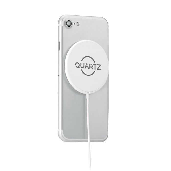Magnetyczna ładowarka bezprzewodowa z ABS. Wyjście: DC 9V/1.1A (10W) do szybkiego ładowania. W tym dodatkowo magnetyczny metalowy pierścień do ładowania innych niemagnetycznych telefonów z możliwością bezprzewodowego ładowania.