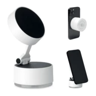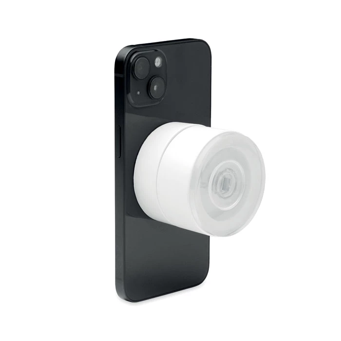 Magnetyczny uchwyt na telefon z ABS. Mocowanie przyssawkowe. Kompatybilny z iPhone® 12 i nowszymi. Zawiera dodatkowy magnetyczny metalowy pierścień do obsługi ładowania innych niemagnetycznych telefonów z możliwością ładowania bezprzewodowego.