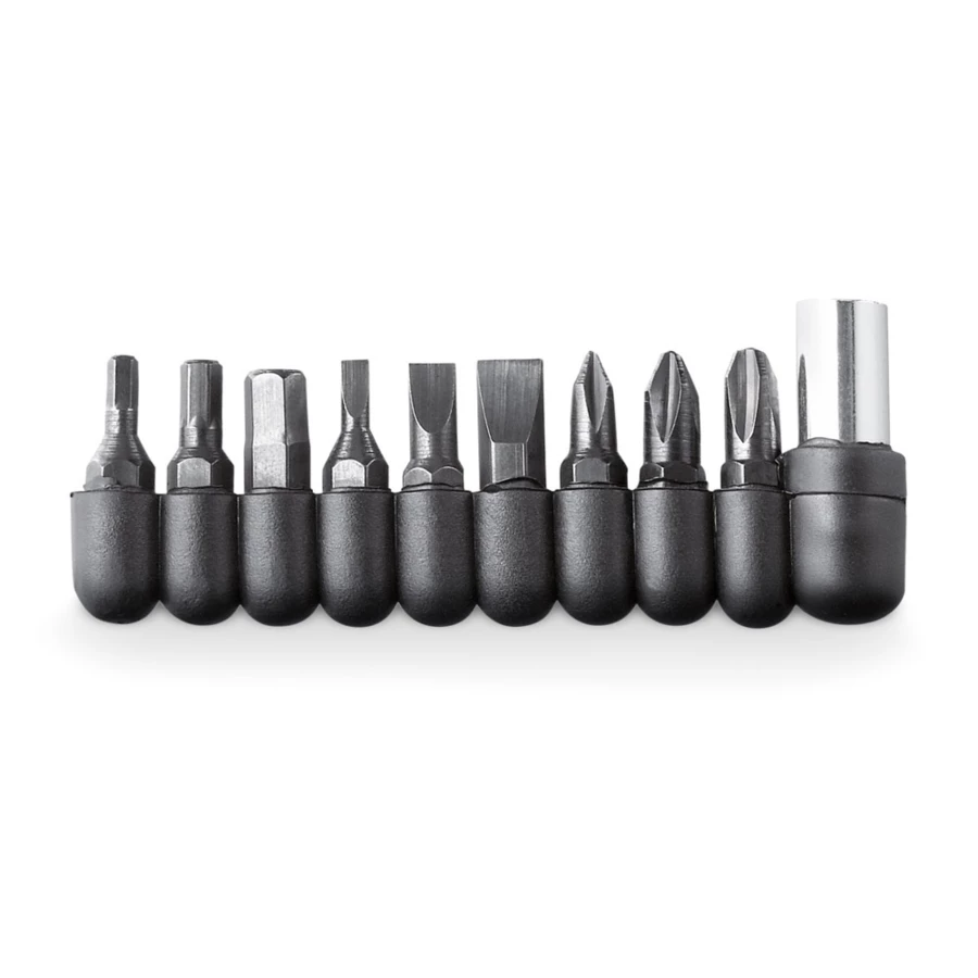 Szczypce składane z narzędziami wielofunkcyjnymi ze stali nierdzewnej i drewna. Zawiera 20 funkcji: szczypce, śrubokręt, bit i adapter bitów 10x, dziurkacz do skór, otwieracz do butelek, linijka, ściągacz do rybich łusek, ściągacz do haczyków, śrubokręt PH, śrubokręt płaski, nóż i wkręt. Dostarczane w torbie poliestrowej. 45 x 100 x 25 mm | Etui: 65 x 140 x 30 mm
