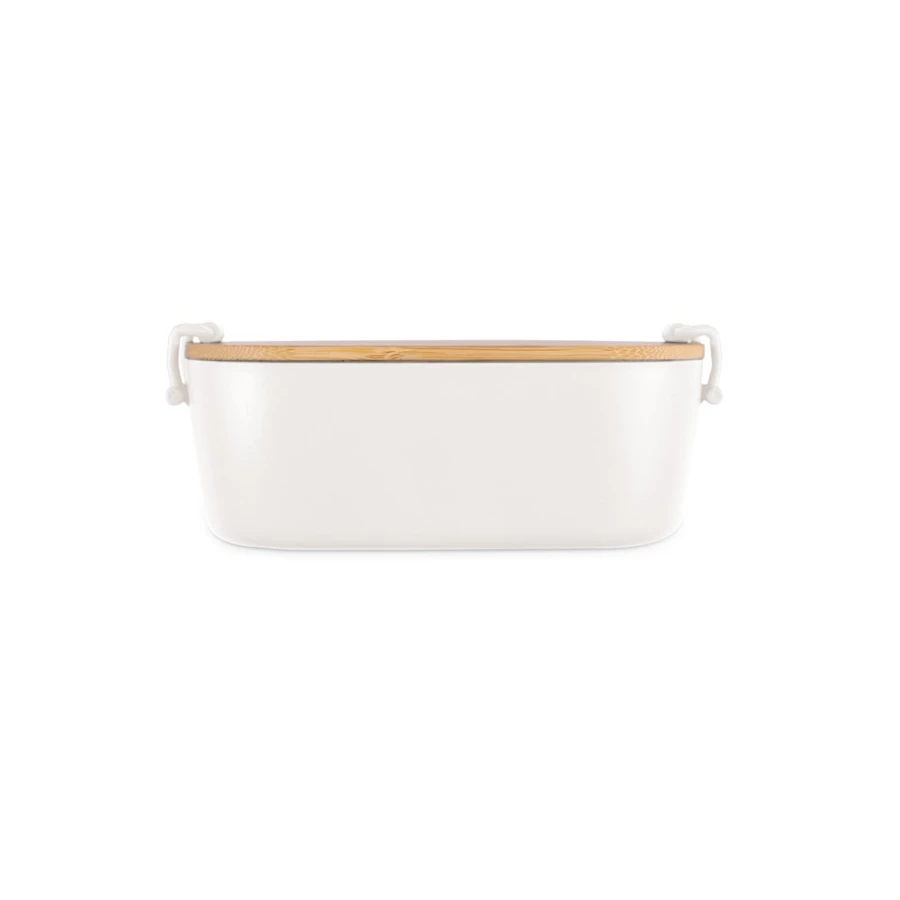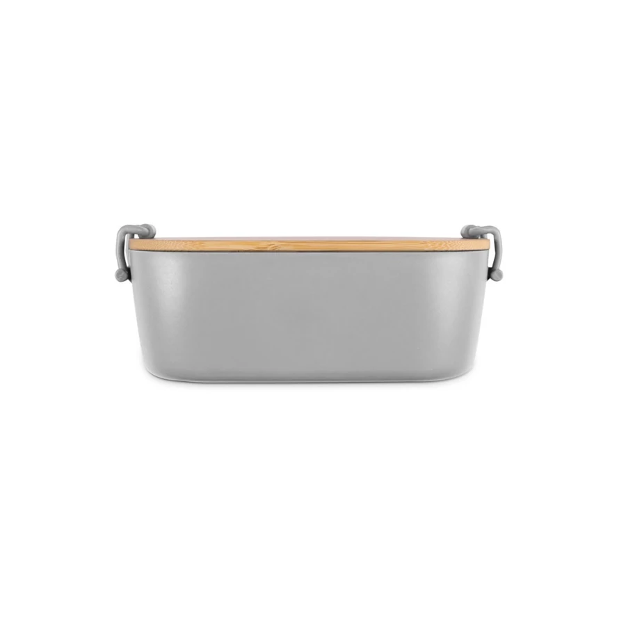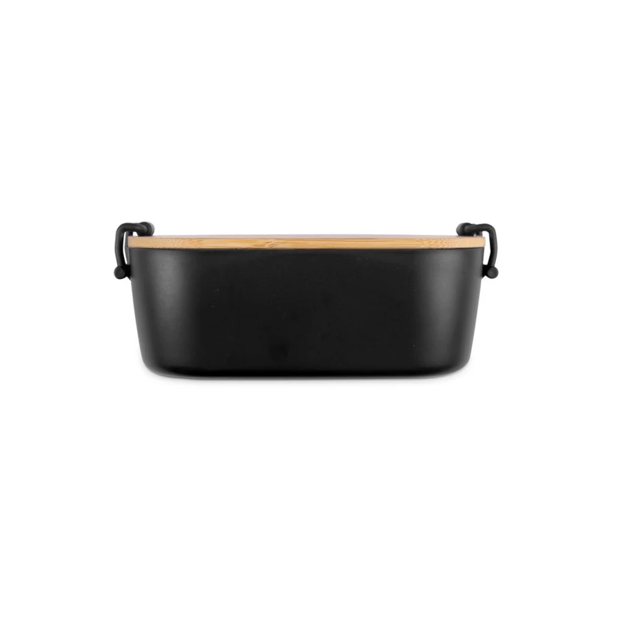 Szczelny pojemnik PP z bambusową pokrywką i bocznymi klamrami zabezpieczającymi. Można myć w zmywarce i używać w kuchence mikrofalowej, po zdjęciu pokrywki. Pojemność do 1 L. Ponieważ produkt jest wykonany z naturalnych materiałów, kolor produktu oraz wynik drukowania mogą się różnić w zależności od produktu. 200 x 107 x 70 mm