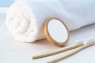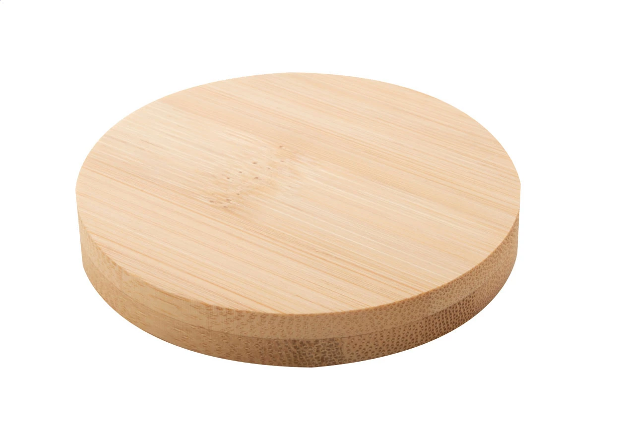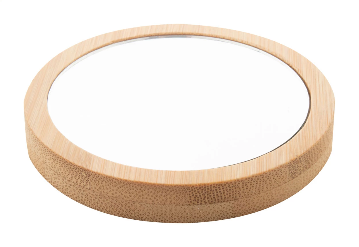 Okrągłe, bambusowe lusterko kieszonkowe.