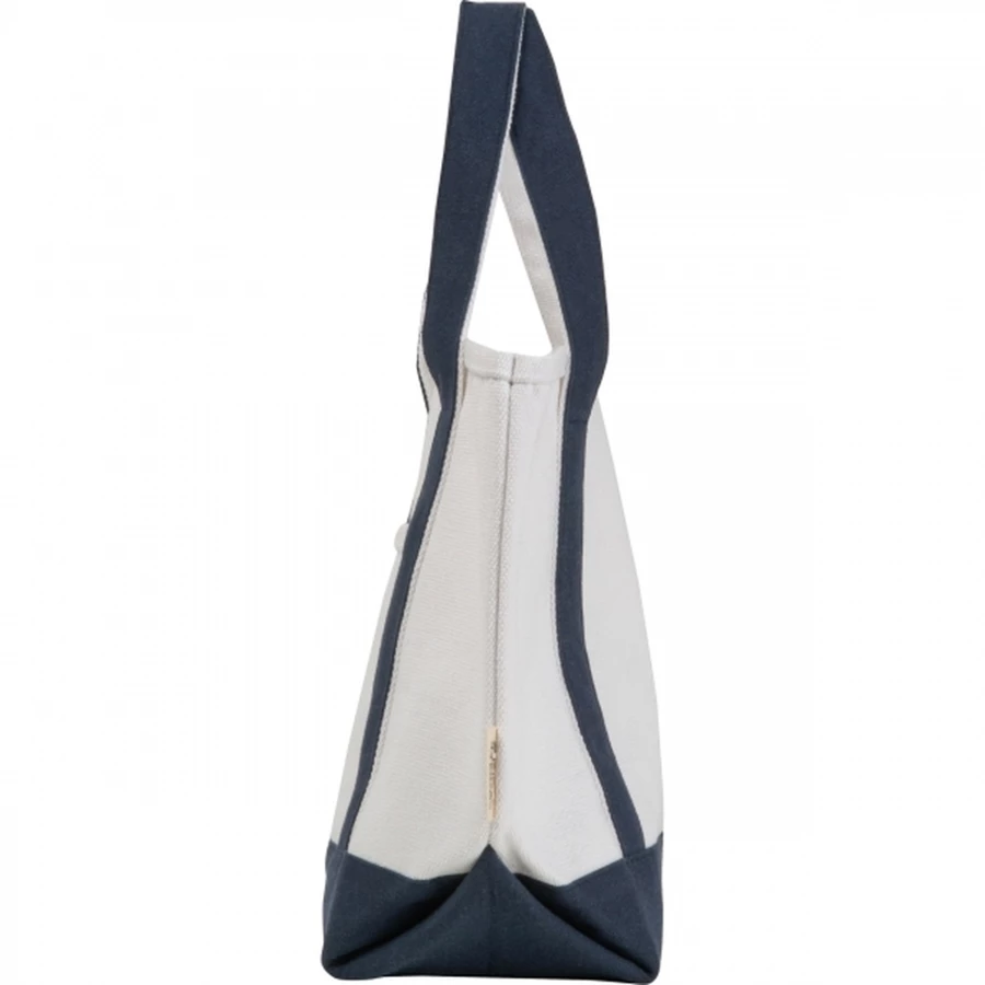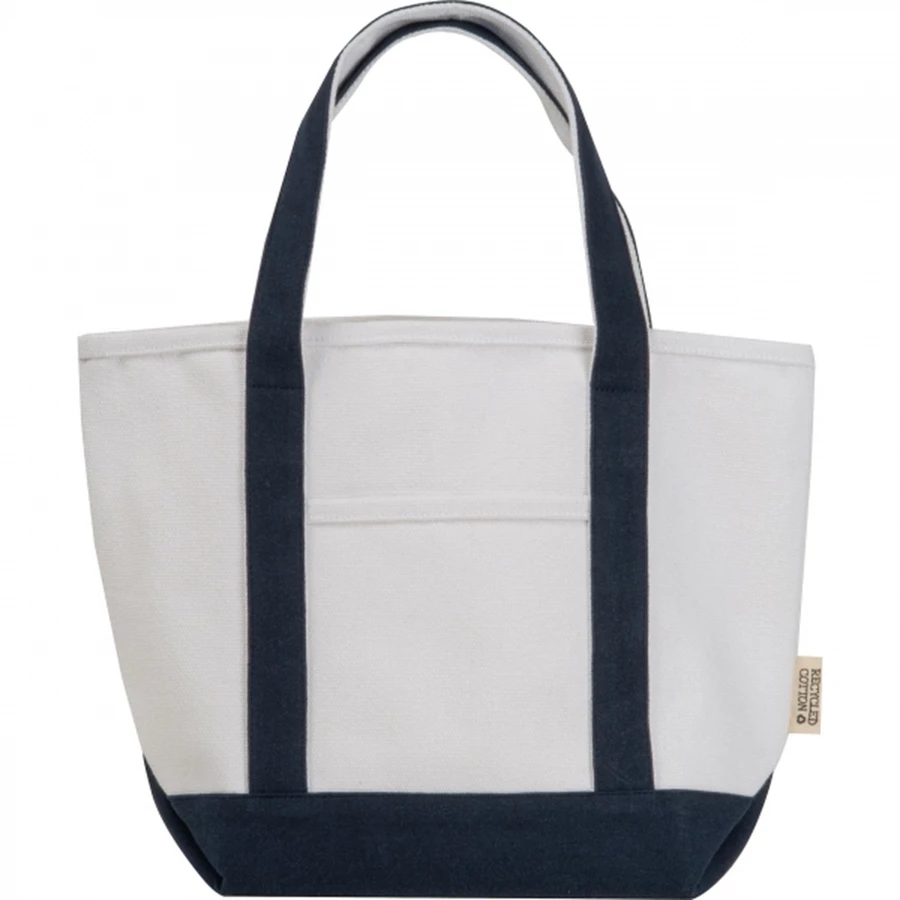 Mała torba o gramaturze 730 g/m2, wykonana z bawełny pochodzącej z recyklingu z długimi kolorowymi uchwytami.