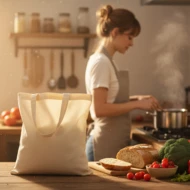 Mała torba bawełniana w naturalnym kolorze z krótkimi uszami (12 cm), gramatura 140 g/m². Certyfikat ECO Tex standard 100.