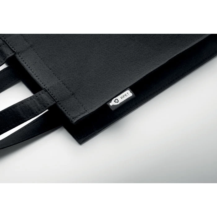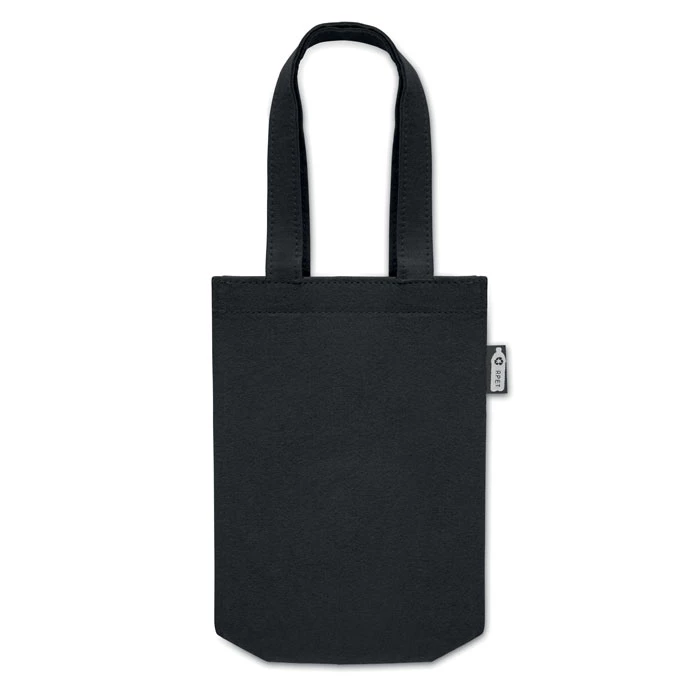 Mała torba filcowa RPET na prezenty lub gadżety z krótkimi uchwytami i dolnym klinem. Grubość filcu: 1 mm.