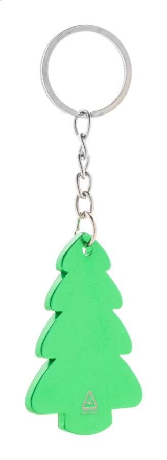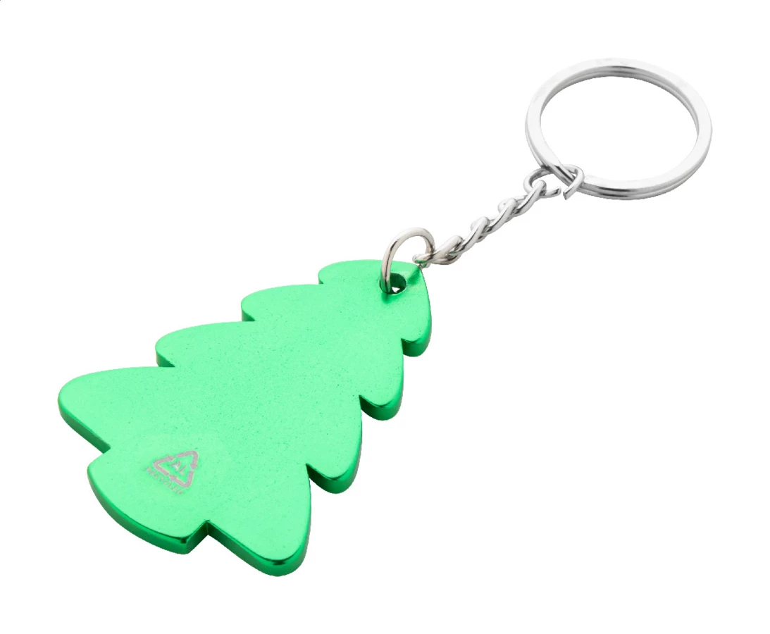 Brelok do kluczy w kształcie choinki wykonany z recyklingowanego aluminium z metalowym kółkiem.