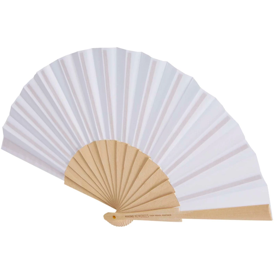 Wentylator ręczny wykonany z drewna i poliestru, dostępny w szerokiej gamie kolorów.