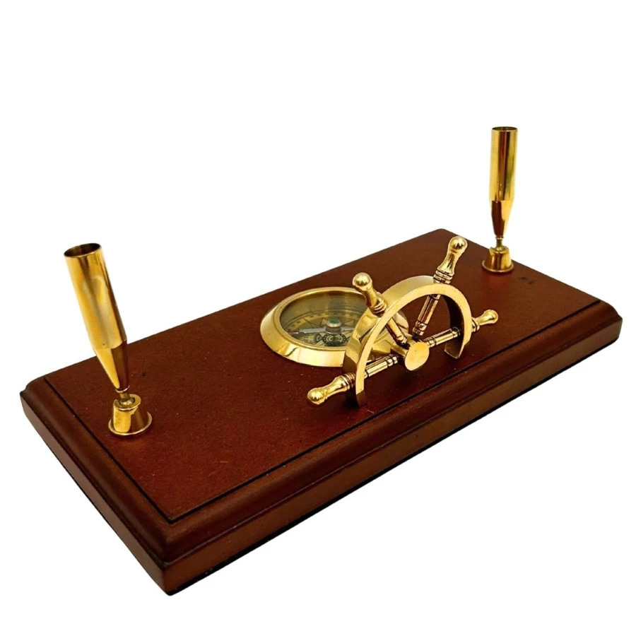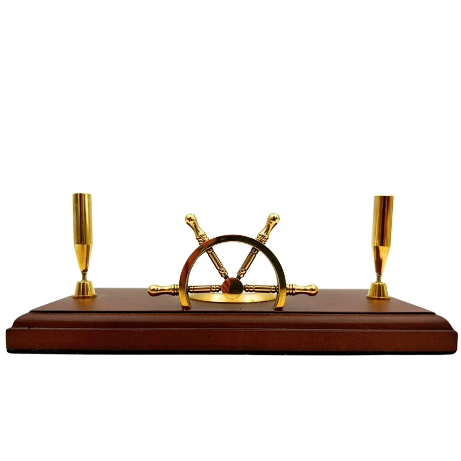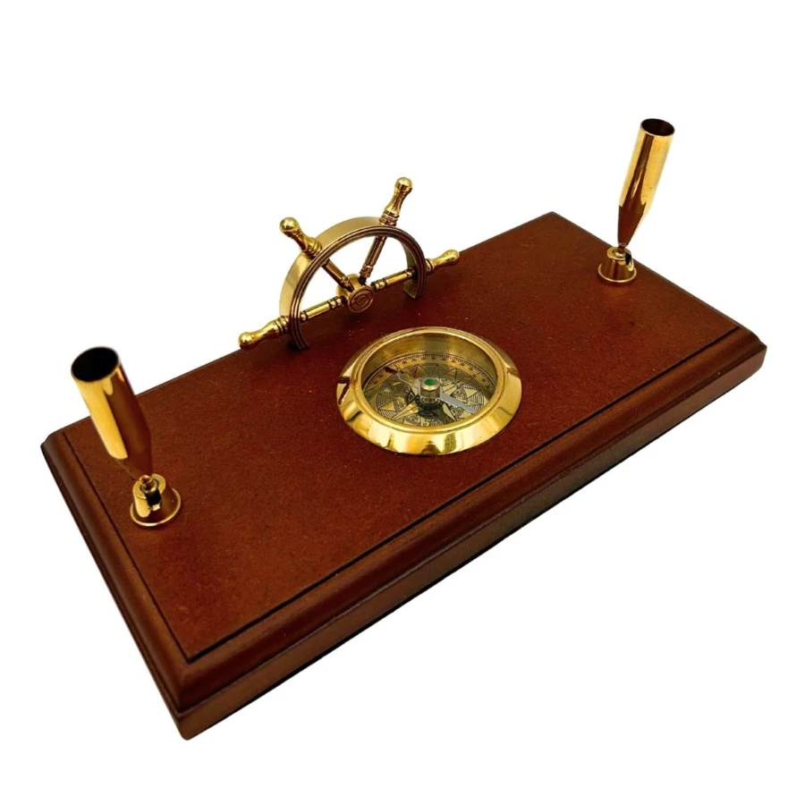 Marynistyczny Zestaw Biurkowy – Koło Sterowe, Kompas, Uchwyty na Długopisy – TT019