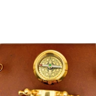 Centralnym elementem zestawu jest miniaturowe koło sterowe, które symbolizuje dowodzenie, odpowiedzialność i kierunek. Obok niego umieszczono funkcjonalny kompas oraz dwa uchwyty na długopis, które dodają całości praktycznego charakteru.