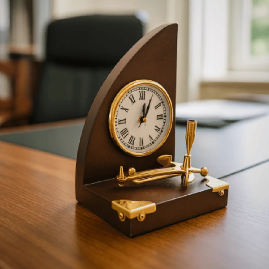 Marynistyczny Zestaw Biurkowy Zegar i Uchwyt na Długopis – Jacht – TC025